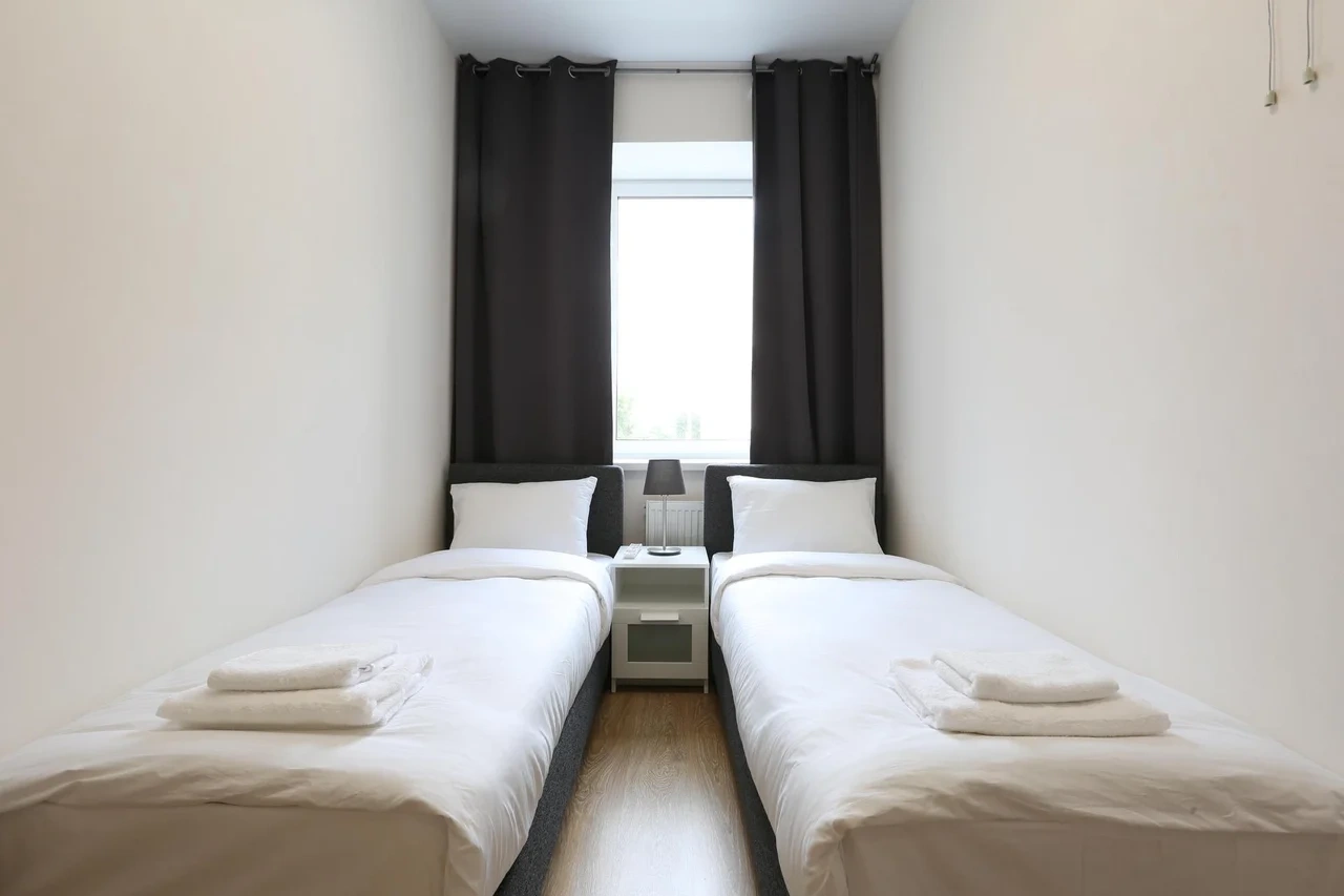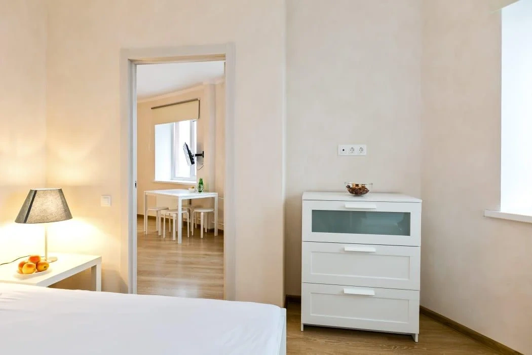 Апартаменты со всеми удобствами для 4 гостей. Спальня отдельно, гостиная с кухней объединены.