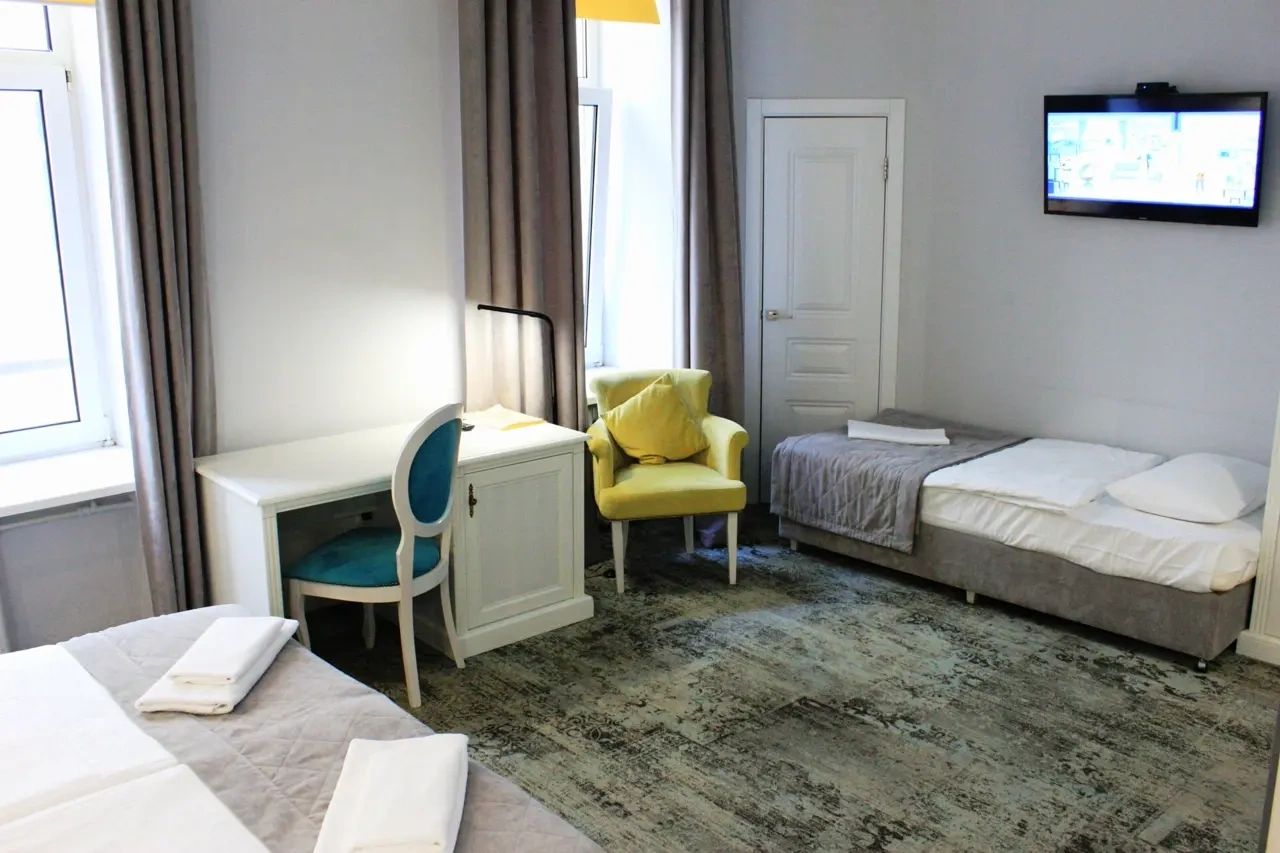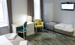 Двухкомнатный семейный номер с двуспальной кроватью, небольшим диваном-кроватью и микроволновой печью. Изысканная меблировка и декор, наличие WiFI и телефонной связи. Номер оснащен мини-холодильником, электрическим чайником, чайными принадлежностями, телевизором , феном ,кондиционером. Возможно для размещения семей с маленькими детьми.Постельное белье и пушистые полотенца помогут создают домашнюю атмосферу. Ванная комната оснащена немецким сантехническим оборудованием.Площадь номера 22 кв.м.