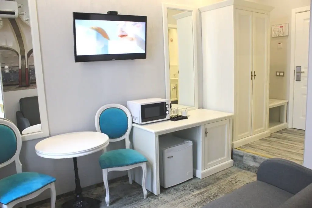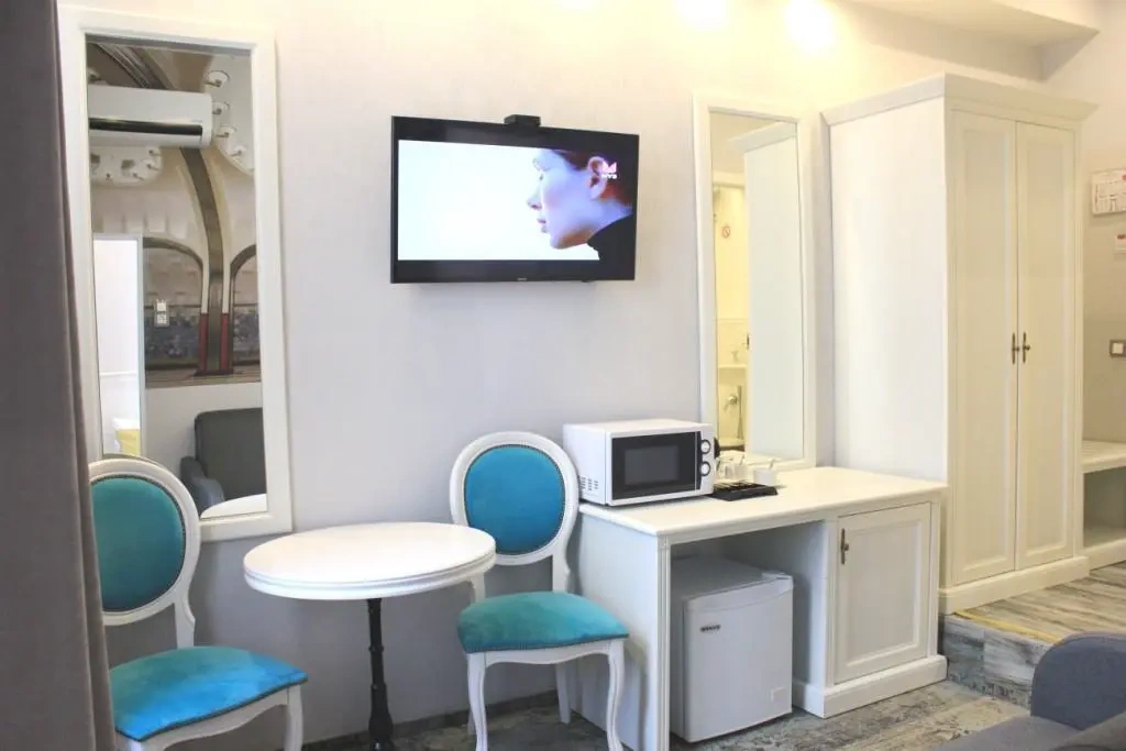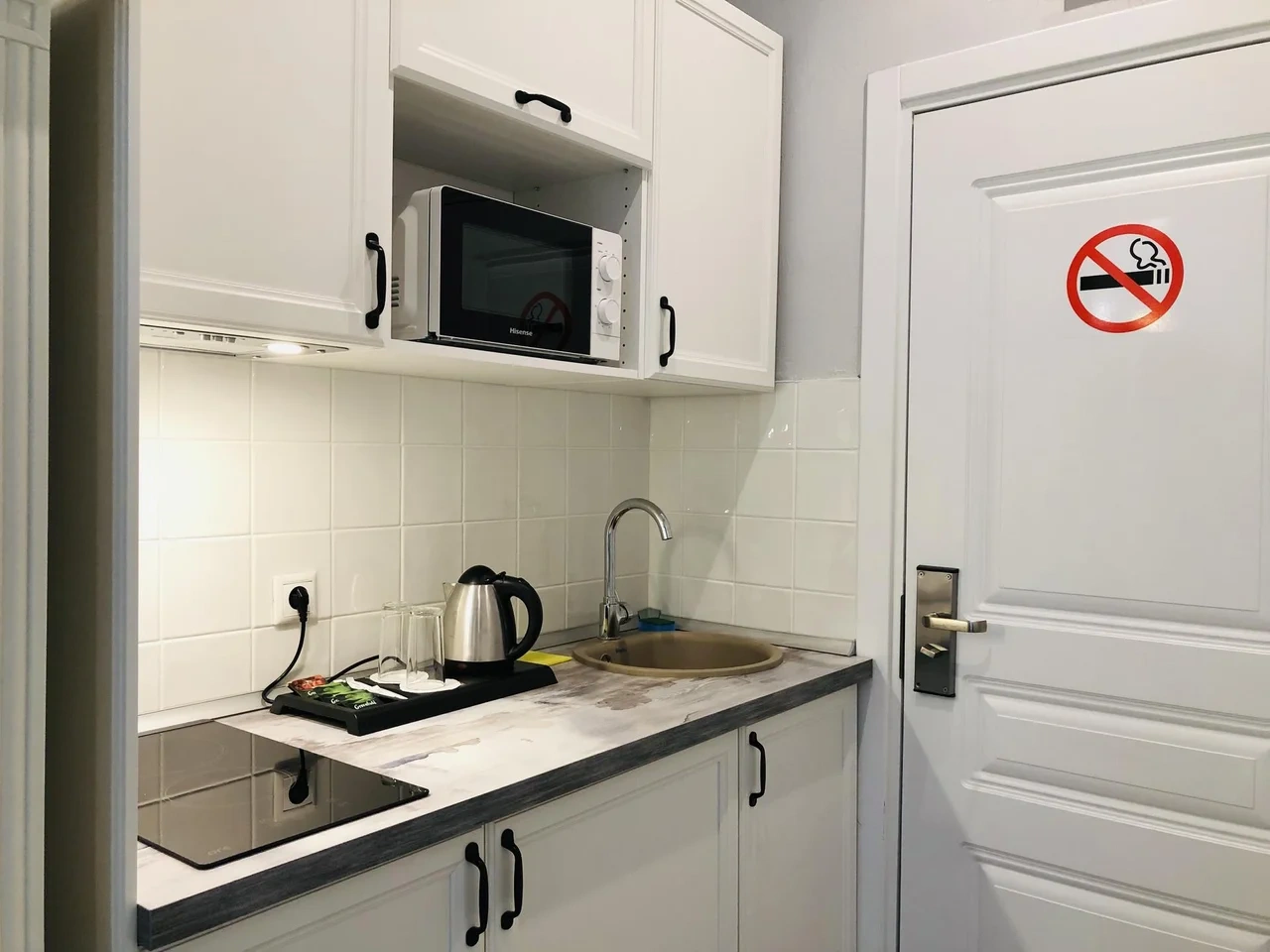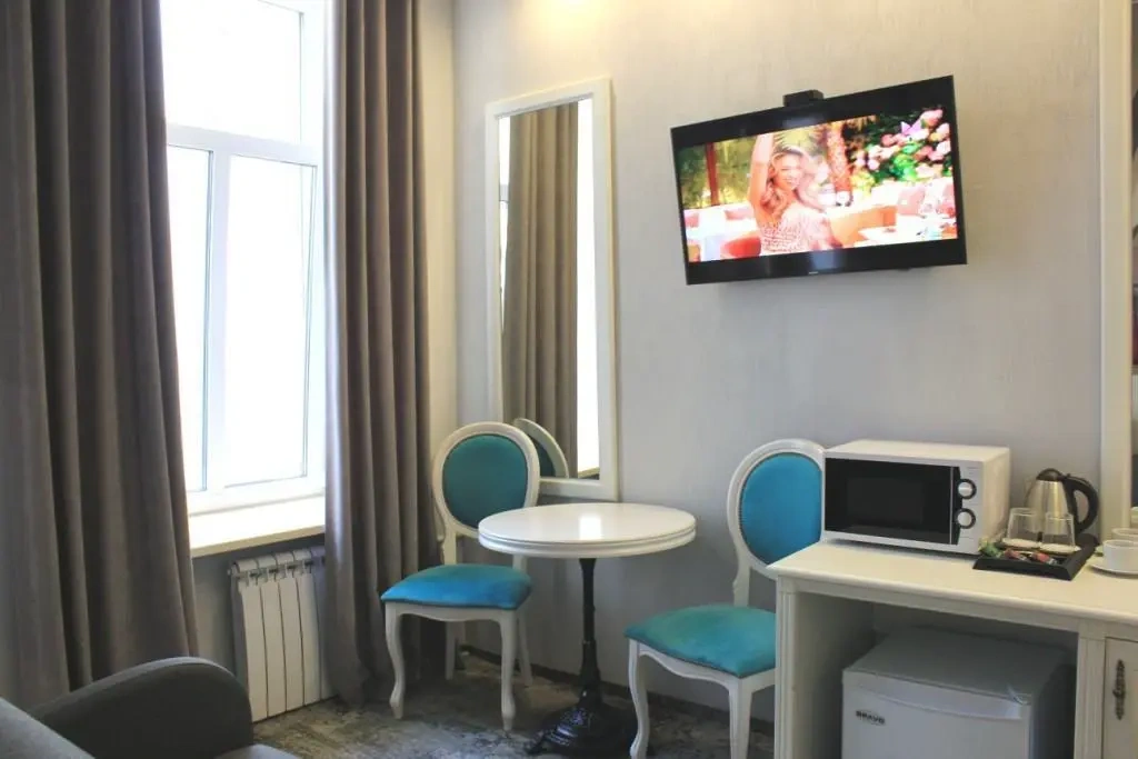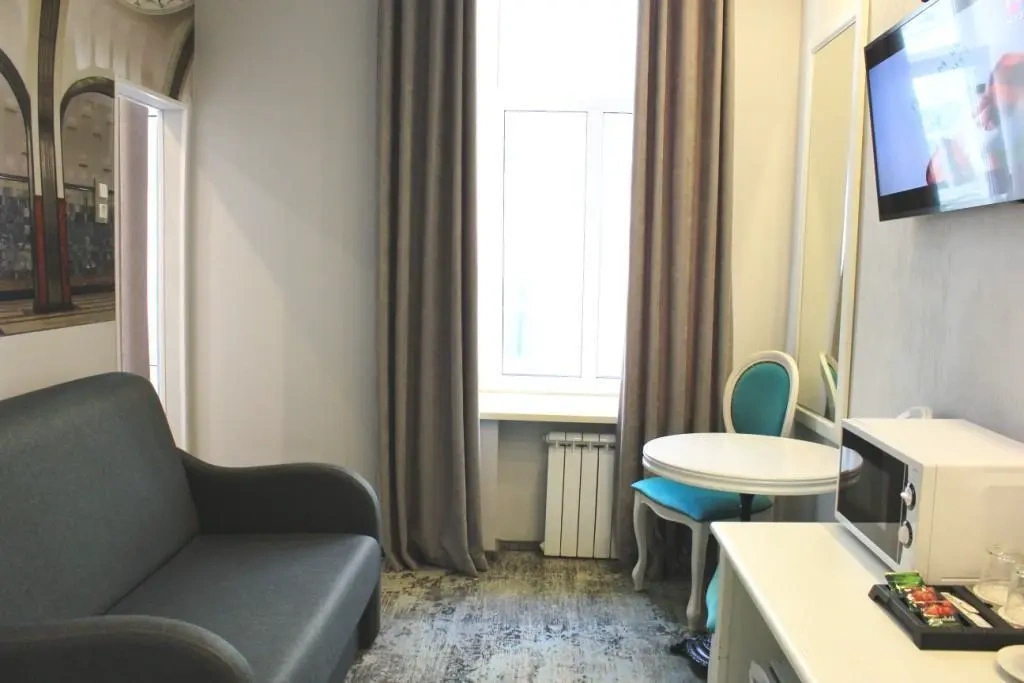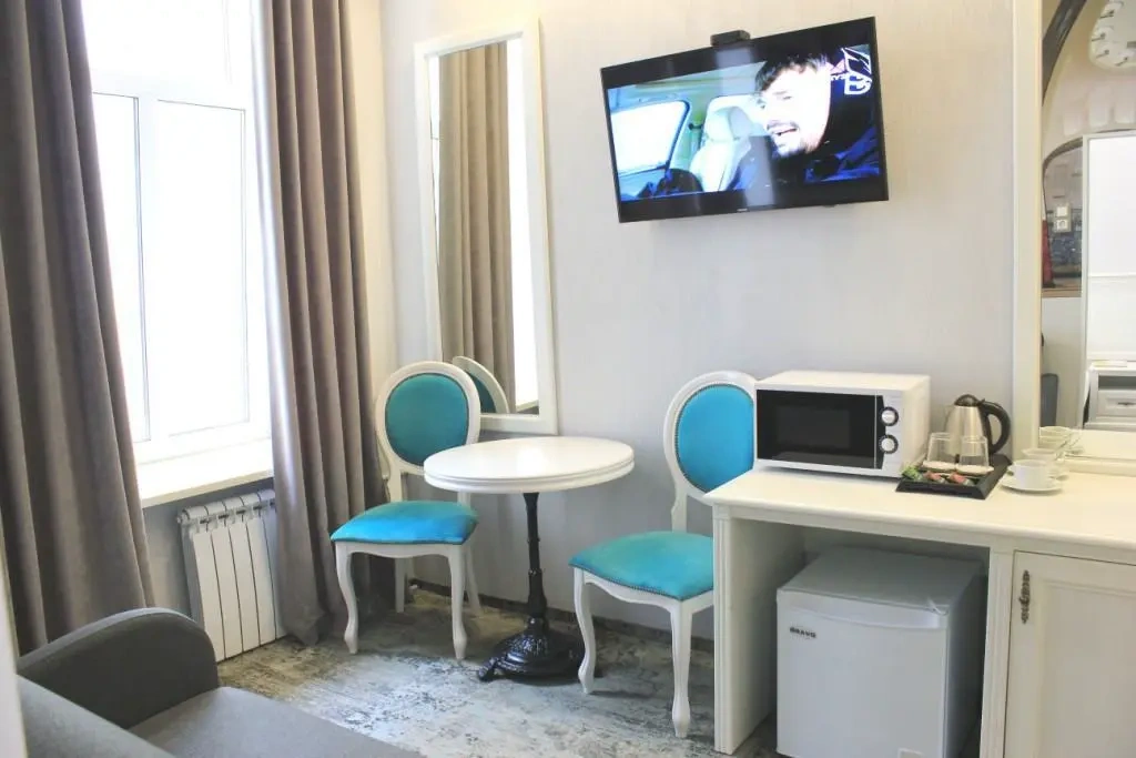 Современный двухместный номер площадью 12 м2 в европейском стиле с небольшой кухней, новой мебелью и оборудованием . Номер оснащен всем необходимым для комфортного проживания: телефон с доступом в город, микроволновая печь, мойка, набор посуды, телевизор, кондиционер, электрический чайник с чайными принадлежностями , мини-бар ,фен. Ванная комната оснащена новым сантехническим оборудованием с душевой кабиной. Наличие мягкого халата и пушистых полотенец помогут создают домашнюю атмосферу.