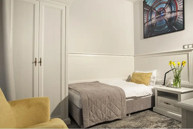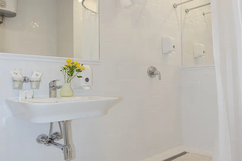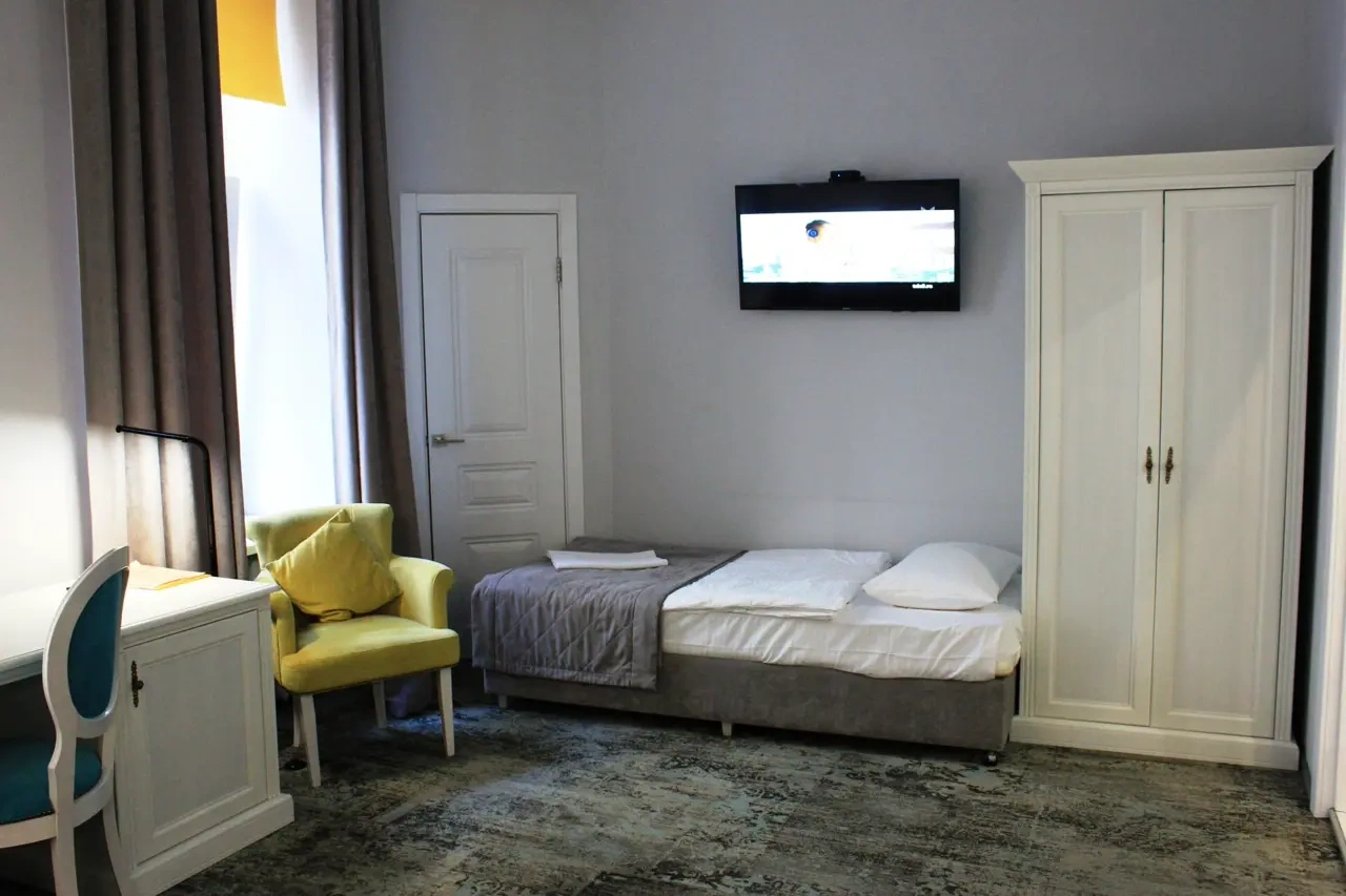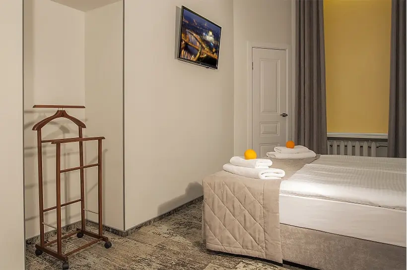Современные номера для одного гостя с возможностью размещения дополнительного места. Номера оснащены мини-баром, электрическим чайником, чайными принадлежностями, телевизором , феном ,кондиционером. Новизна и чистота номера порадует самого взыскательного путешественника. Наличие пушистых полотенец помогут создают домашнюю атмосферу. Ванная комната оснащена немецким сантехническим оборудованием.