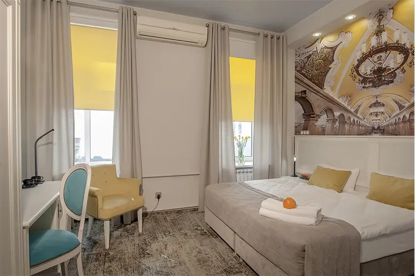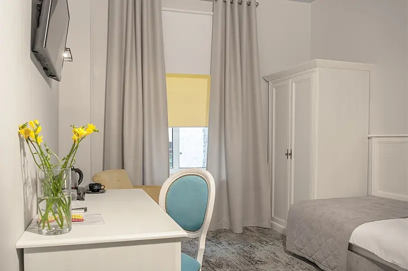 Современные двухместные номера площадью 26 м2 в современном стиле с новой мебелью и оборудованием . Номера оснащены всем необходимым для комфортного проживания: телефон с доступом в город, телевизор, кондиционер, электрический чайник с чайными принадлежностями, мини-бар. Большая кровать (Double bed ) и новое постельное белье. Ванная комната оснащена европейским сантехническим оборудованием. Мягкие полотенца, косметические принадлежности, вода при заезде - приятно порадуют гостей.
