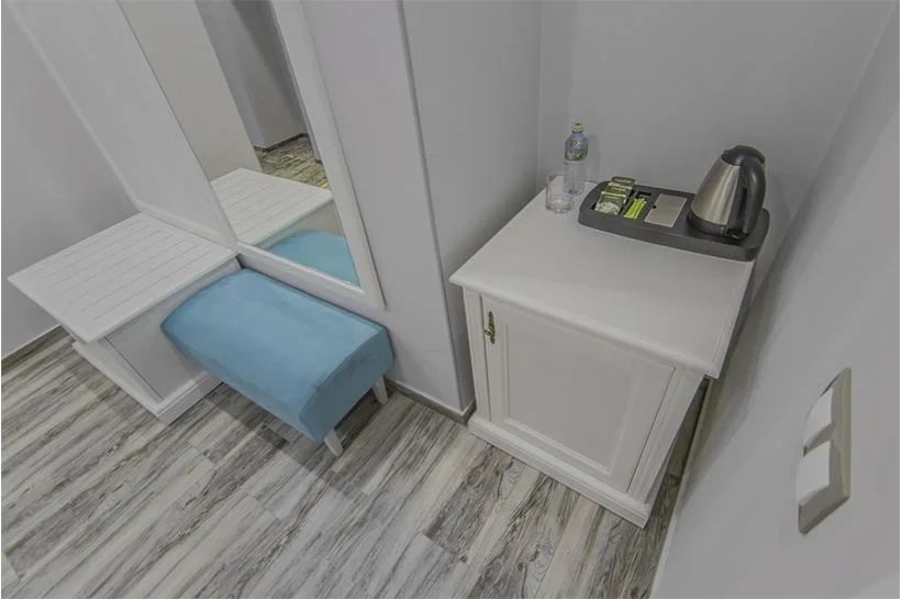 Современные двухместные номера площадью 22 м2 в современном стиле с новой мебелью и оборудованием . Номера оснащены всем необходимым для комфортного проживания: телефон с доступом в город, телевизор, кондиционер, электрический чайник с чайными принадлежностями, мини-бар ,фен. Большая кровать (Double bed ) 180х200 и новое постельное белье. Ванная комната оснащена европейским сантехническим оборудованием. Мягкие полотенца приятно порадуют гостей.