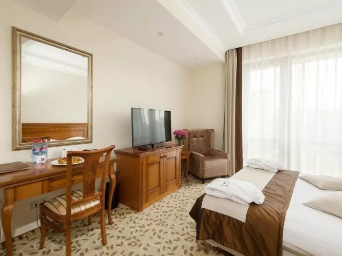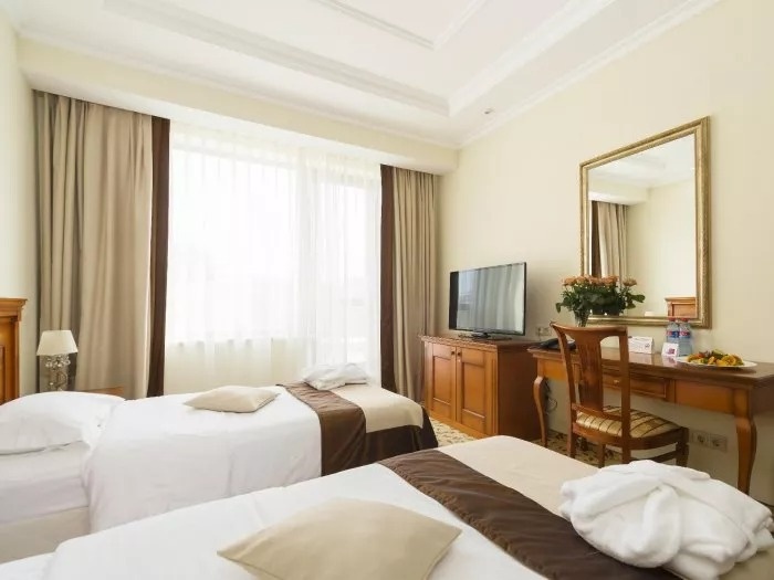 В стоимость входит: проживание в номере выбранной категории; варианты питания: завтрак по системе «шведский стол» пользование клубом «Orange Fitness», где Вы можете потренироваться в тренажерном зале, поплавать в спортивном бассейне и посетить хамам по будням с 7:00 до 23:00, по выходным с 9:00 до 23:00 согласно Правилам; пользование открытым бассейном с 8:00 до 20:00 с 1 мая по 15 октября согласно Правилам; открытая парковка; Wi-Fi Расчетный час – 12:00 часов. В день заезда при размещении до расчетного часа при наличии свободных номеров плата за проживание взимается в следующем порядке: с 00:00 до 12:00 – плата за половину суток; В случае задержки выезда после расчетного часа при наличии свободных номеров плата за проживание взимается в следующем порядке: с 12:00 до 24:00 – плата за половину суток; с 24:00 – плата за полные сутки. При бронировании не более суток (24 часа) плата взимается за сутки. Размещение на дополнительном месте в номере производится в следующем порядке: дети до наступления 5 лет размещаются без оплаты на имеющихся кроватях с родителями; для детей до 3 лет детская кроватка предоставляется по запросу бесплатно; дети с 5 лет размещаются с оплатой дополнительного места согласно действующему прайс-листу.