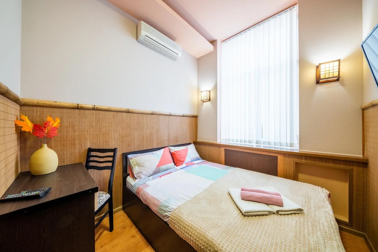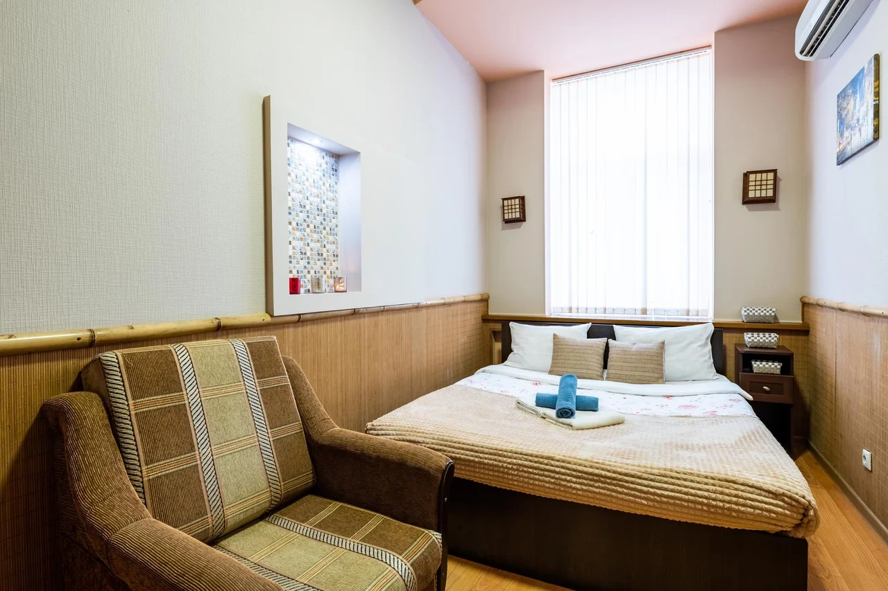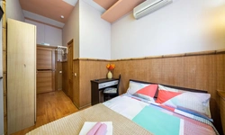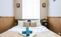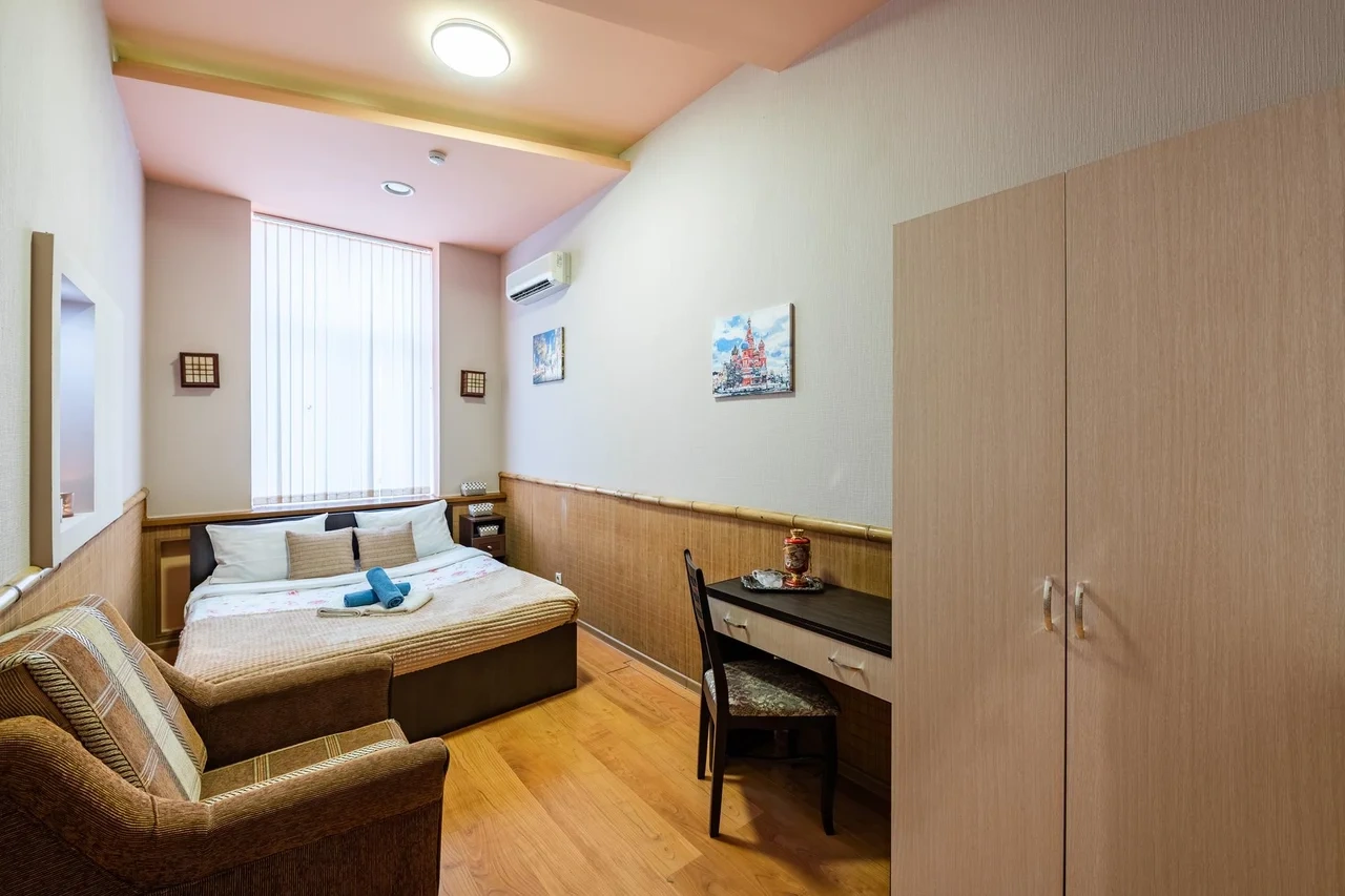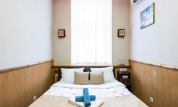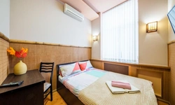 Очень не доброжелательный персонал!!! На вопрос как дойти до отеля от метро нам ответили, что они не знают, они не местные.  Самое главное: на сайте выбираю номер Делюкс на двоих, на фото все красиво, все устраивает. Но при заселении нас селят в какую-то конуру "Делюкс", кровать на всю комнатку, до стены 40-50 см с обеих сторон,  можно только лежать, на стене висит обогреватель, за окном полуразбитый кондиционер. В коридоре маленькая вешалка и дверь в ванну, даже стульчика или тумбочку вместить не куда. В ответ на претензии, слышим: что от меня вам нужно, я вас поселила, фото у вас нет, что вы там заказывали. После препирательств нашелся еще один номер, но там надо доплатить.  Это оказался тот номер, который мы заказывали, не доплачивали, переселили. На сайте в номере заявлены холодильник, чайник, посуда и т.д. Все это оказалось на кухне. Одно полотенце, попросили для ног, но ответа не дождались. Ни одного слова в простоте, пример: куда выбросить бахилы - ответ, а для чего ведро стоит в коридоре???? Прожили 2 суток, чувствовали себя ужасно.