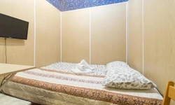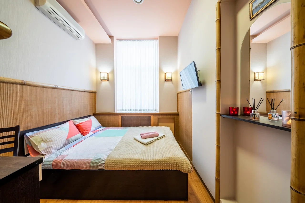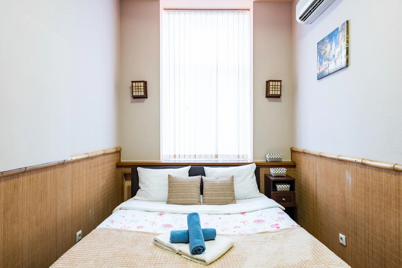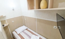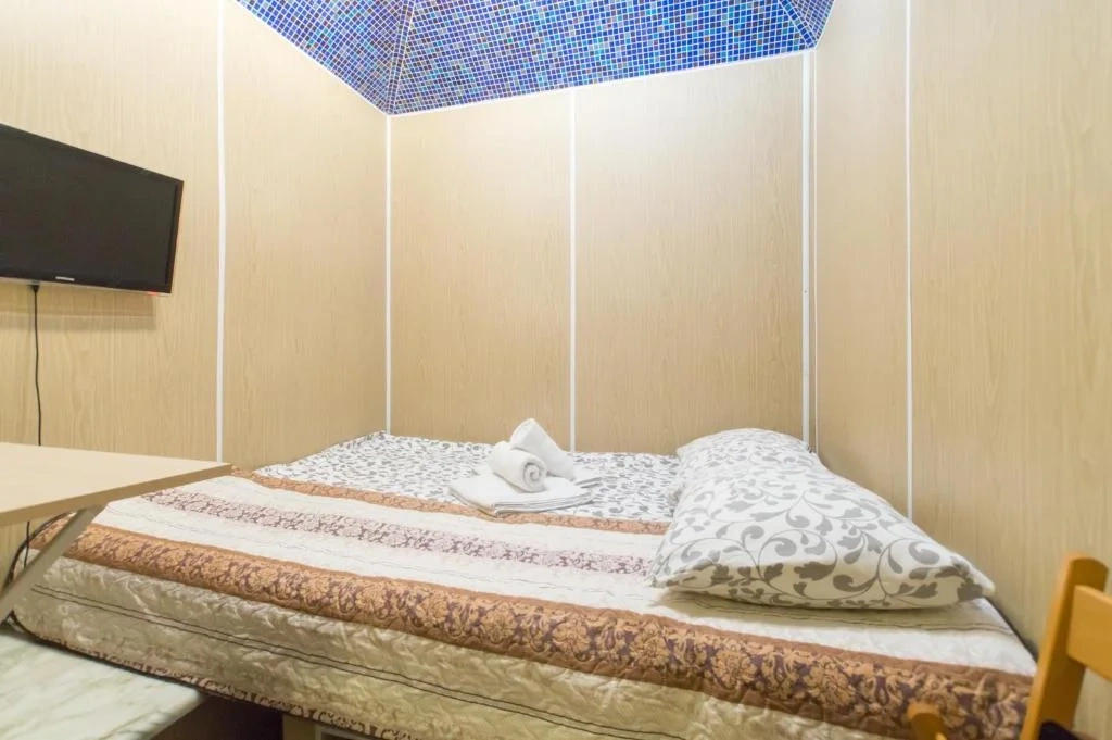 Очень не доброжелательный персонал!!! На вопрос как дойти до отеля от метро нам ответили, что они не знают, они не местные.  Самое главное: на сайте выбираю номер Делюкс на двоих, на фото все красиво, все устраивает. Но при заселении нас селят в какую-то конуру "Делюкс", кровать на всю комнатку, до стены 40-50 см с обеих сторон,  можно только лежать, на стене висит обогреватель, за окном полуразбитый кондиционер. В коридоре маленькая вешалка и дверь в ванну, даже стульчика или тумбочку вместить не куда. В ответ на претензии, слышим: что от меня вам нужно, я вас поселила, фото у вас нет, что вы там заказывали. После препирательств нашелся еще один номер, но там надо доплатить.  Это оказался тот номер, который мы заказывали, не доплачивали, переселили. На сайте в номере заявлены холодильник, чайник, посуда и т.д. Все это оказалось на кухне. Одно полотенце, попросили для ног, но ответа не дождались. Ни одного слова в простоте, пример: куда выбросить бахилы - ответ, а для чего ведро стоит в коридоре???? Прожили 2 суток, чувствовали себя ужасно.