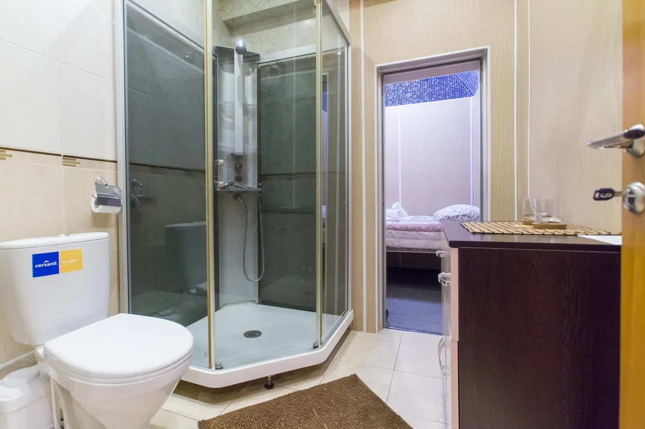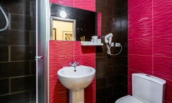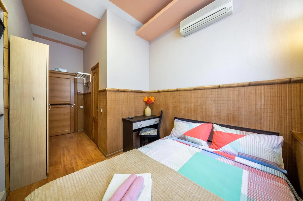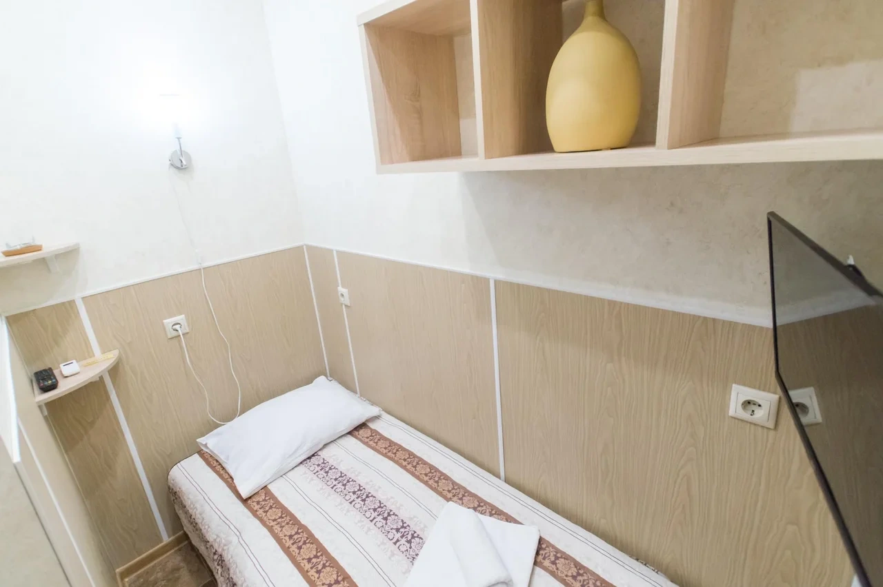 Из минусов очень маленькие номера, для двоих в притык, низкая звукоизоляция, для использования душа необходимо слить воду пару минут чтобы пошла горячая вода.
