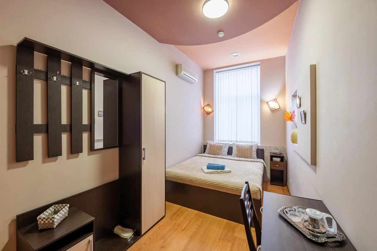 Ужасный отель, грязно! Холодно! Вода еле идёт в душе, точнее капает, и мыться просто невозможно! Стены бумажные, разговоры соседей обычным голосом даже слышны! Кровать ужасная, матрасу наверное лет 20! Не остановимся там больше никогда! За такие деньги это просто ужасно несправедливо! За две ночи на двоих заплатила 12 т р. Этот отель и 5 рублей не стоит. Единственный плюс - это близость к центру, если бы по локации в приложении указаны были ещё другие отели в этом же доме, я бы выбрала другой отель, т к я читала негативные отзывы про этот отель, но думала у меня выбора нет, а оказывается был, в этом же здании как минимум ещё три отеля есть.