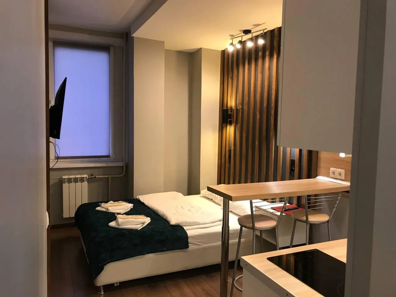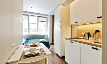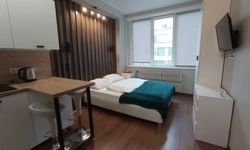 Апартаменты с кухней расположены в шаговой доступности от МЦК "Хорошёво", м. "Полежаевская". Гостям предлагается студия, в которой установлена большая двуспальная кровать, либо 2 раздельные односпальные кровати. Также возможно поставить дополнительную кровать. В апартаментах дизайнерский ремонт, они отлично подойдут для размещения двух гостей. Также имеется удобное рабочее место, высокоскоростной интернет. Апартаменты прекрасно подходят и для деловых поездок (в 10 минутах - Деловой центр). Наши преимущества: - Локация (5 минут до МЦК Хорошево и через 2 остановки Вы в Москва-Сити); - Высокоскоростной интернет; - Возможность оперативно организовать уборку апартаментов; - Кухня с минимальным набором посуды для приготовления пищи, а также холодильник, варочная панель и электрический чайник; - Услуги прачечной, а также утюг и фен (предоставляются по запросу); - Постельное белье и банные полотенца; - SMART TV; - Администратор-консьерж, который поможет решить любой ваш вопрос в процессе проживания.