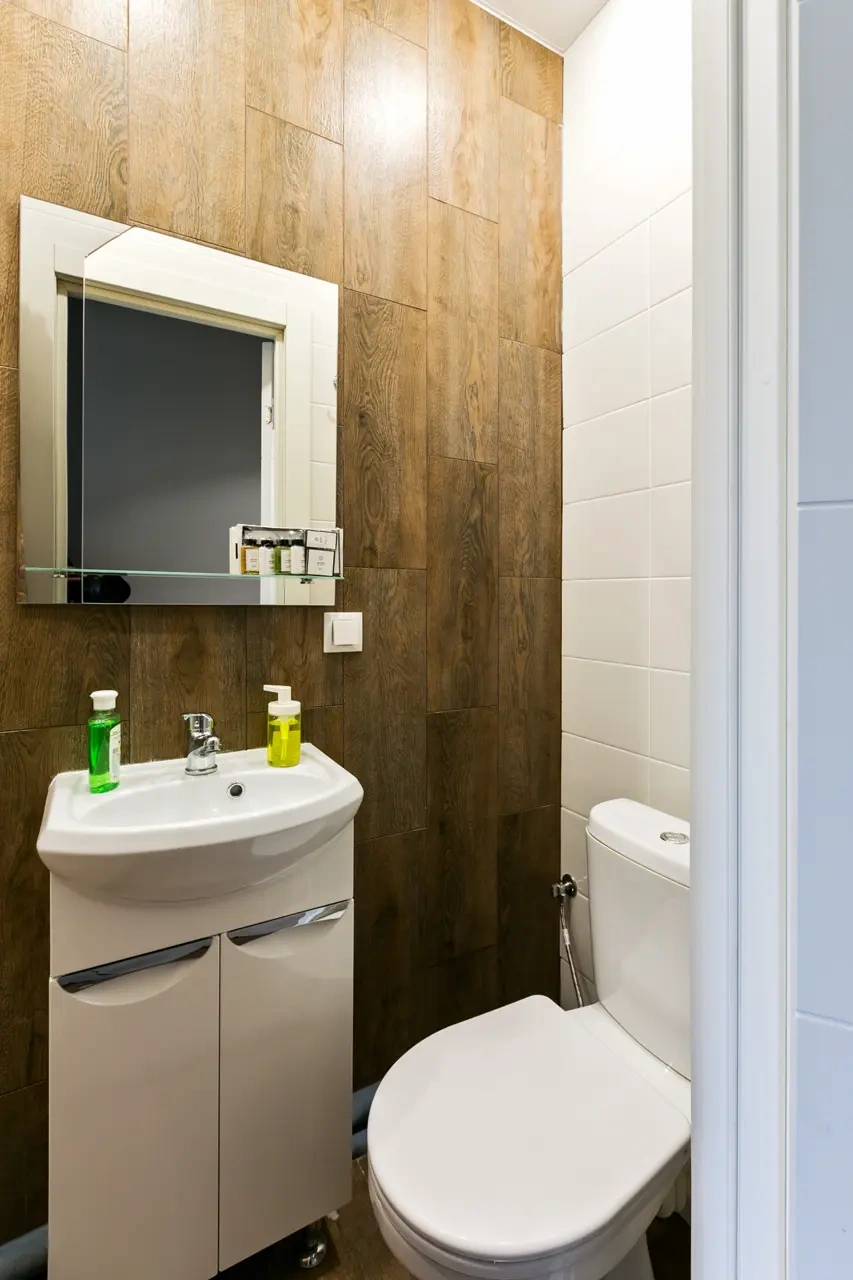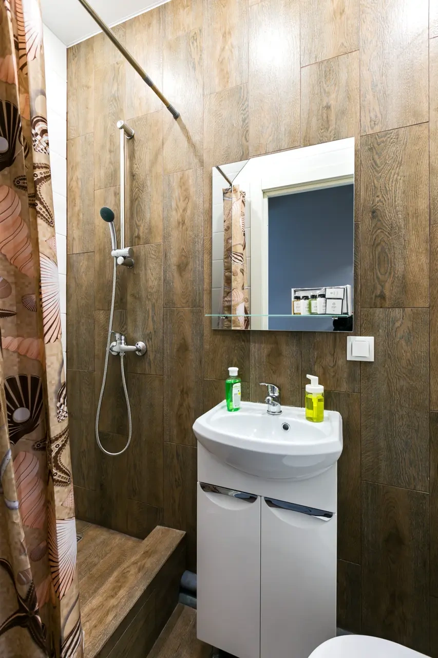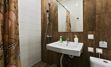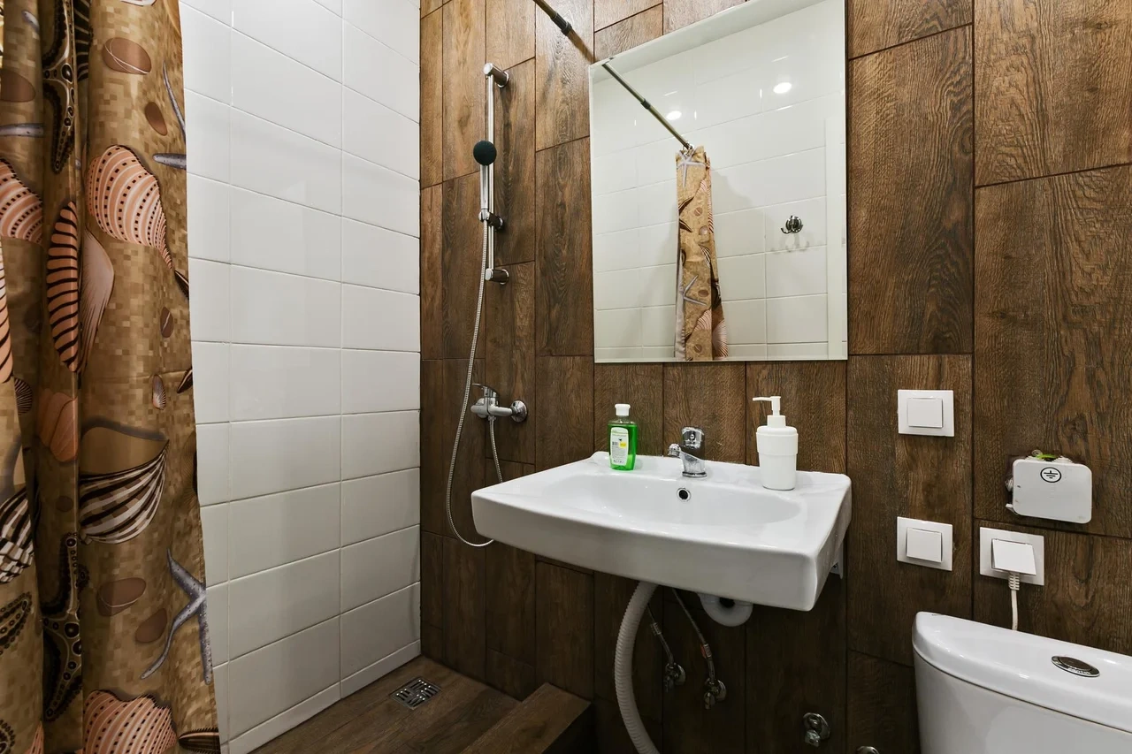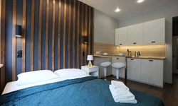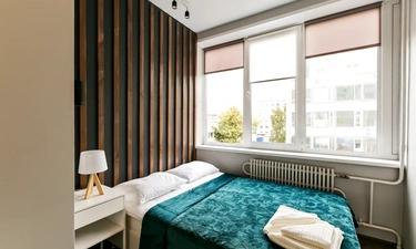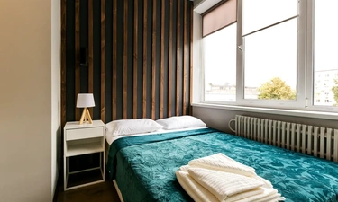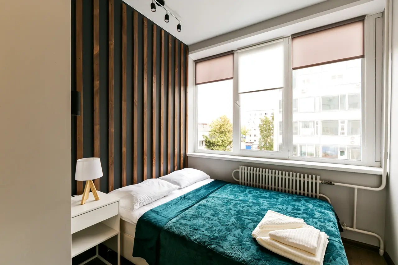 Гостям предлагается студия, в которой установлена большая двуспальная кровать, либо 2 раздельные односпальные кровати. Также возможно поставить дополнительную кровать. В апартаментах дизайнерский ремонт, они отлично подойдут для размещения двух гостей.