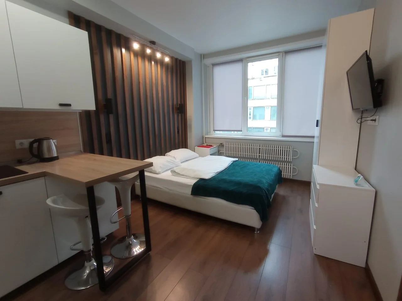 Также имеется удобное рабочее место, высокоскоростной интернет. Апартаменты прекрасно подходят и для деловых поездок (в 10 минутах - Деловой центр).