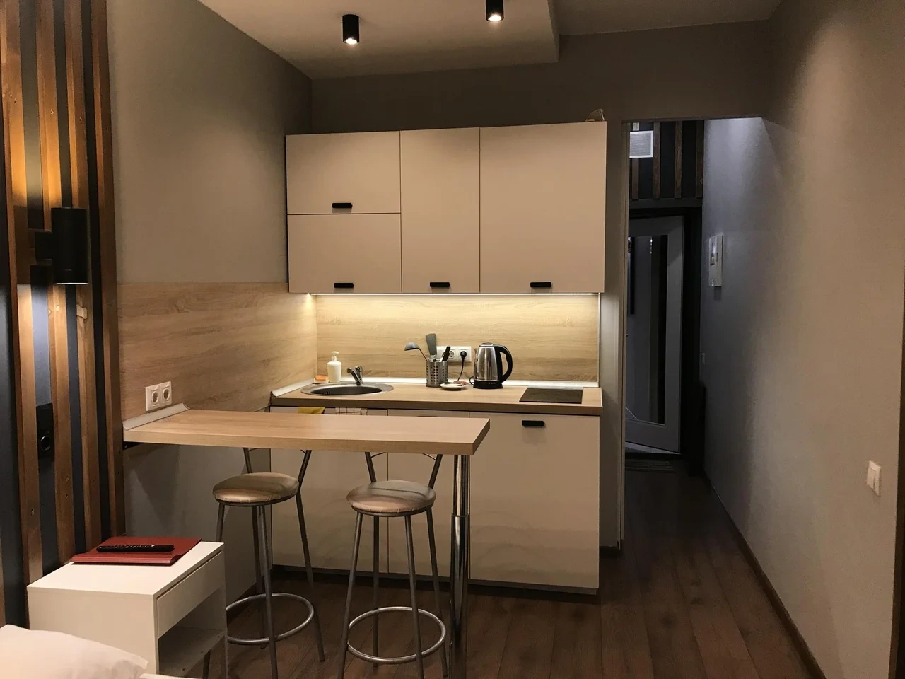 Апартаменты с кухней расположены в шаговой доступности от МЦК "Хорошёво", м. "Полежаевская". Гостям предлагается студия, в которой установлена большая двуспальная кровать. Также возможно поставить дополнительную кровать. В апартаментах дизайнерский ремонт, они отлично подойдут для размещения двух гостей. Также имеется удобное рабочее место, высокоскоростной интернет. Апартаменты прекрасно подходят и для деловых поездок (в 10 минутах - Деловой центр). В студии имеется: кровать, барный стол, тумбочка, камод, шкаф; кухня с основным набором посуды, а также мини-холодильник, варочная панель и электрический чайник; душевая и санузел, стиральная машина; постельное белье и полотенца, тапочки, гигиенические наборы (шампунь, гель для душа, зубной набор), халаты, фен; Smart-TV; гладильная доска и утюг (по запросу); Wi-Fi на всей территории апартаментов.