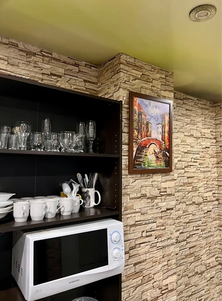Хозяйка вежливая, приветливая, доброжелательная . Входная группа выглядит очень даже хорошо, в коридоре «мини-отеля» (прихожей) тоже все красиво. Можно постирать вещи (400р) . Жгут благовония, я люблю это, лично за это плюс. Плюсы закончились