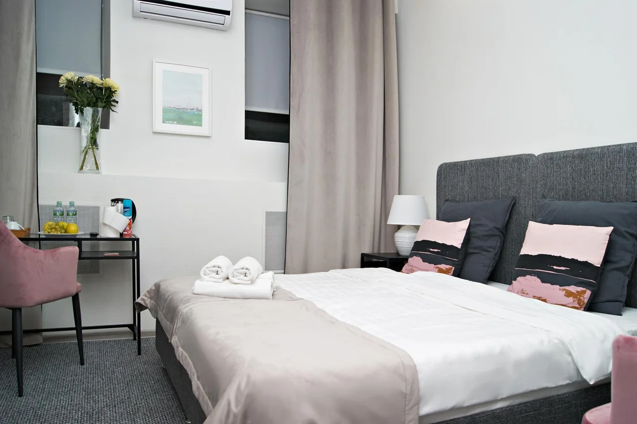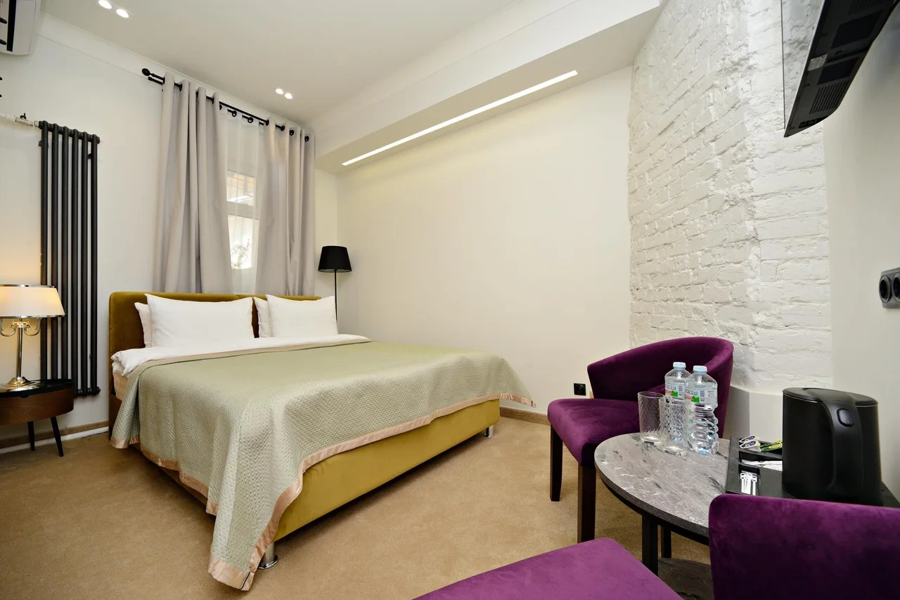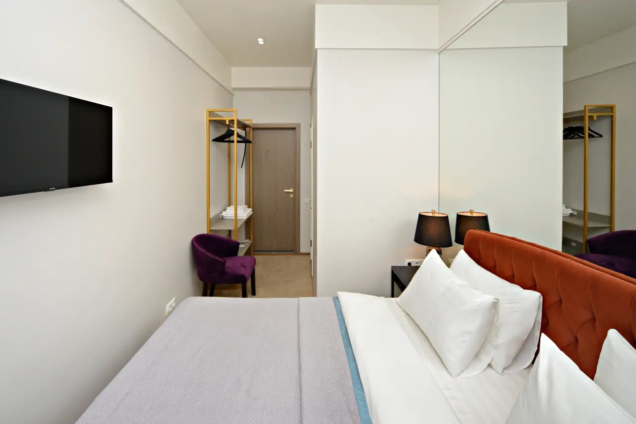 Номер с современным дизайном, кондиционером, меню подушек и смарт-тв В вашем распоряжении собственная ванная комната. Услуги и удобства: Кондиционер, Туалет, Ванная комната, душ, фен, Холодильник, Электрический чайник. Бесплатный Wi-Fi во всех номерах.