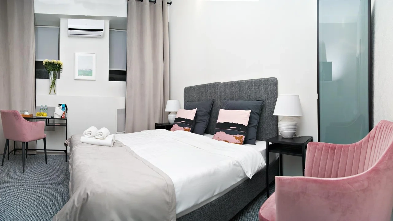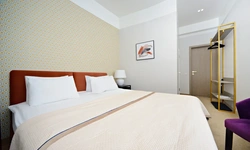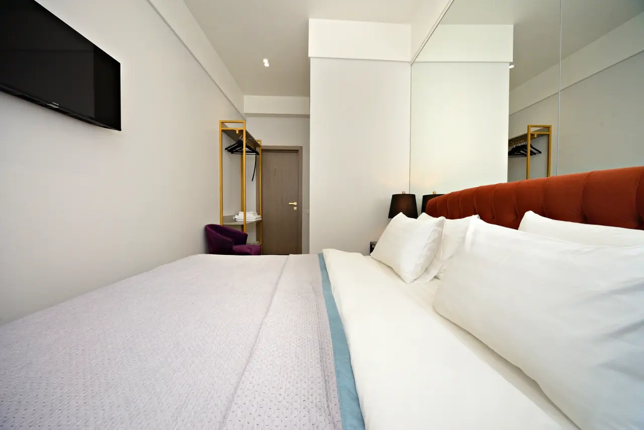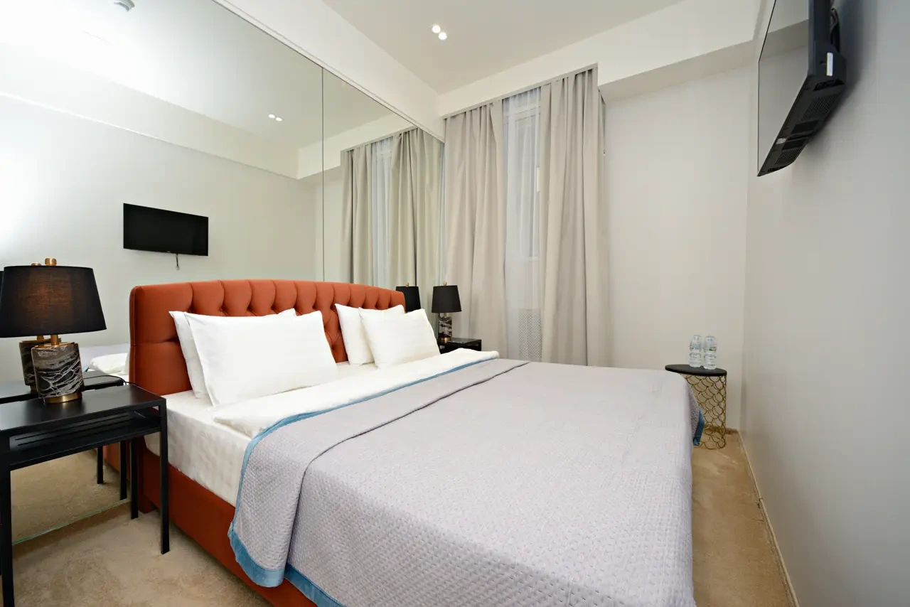 Номер с современным дизайном, кондиционером, меню подушек и смарт-тв В вашем распоряжении собственная ванная комната. Услуги и удобства: Кондиционер, Туалет, Ванная комната, душ, фен, Холодильник, Электрический чайник. Бесплатный Wi-Fi во всех номерах.