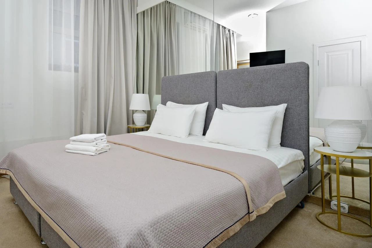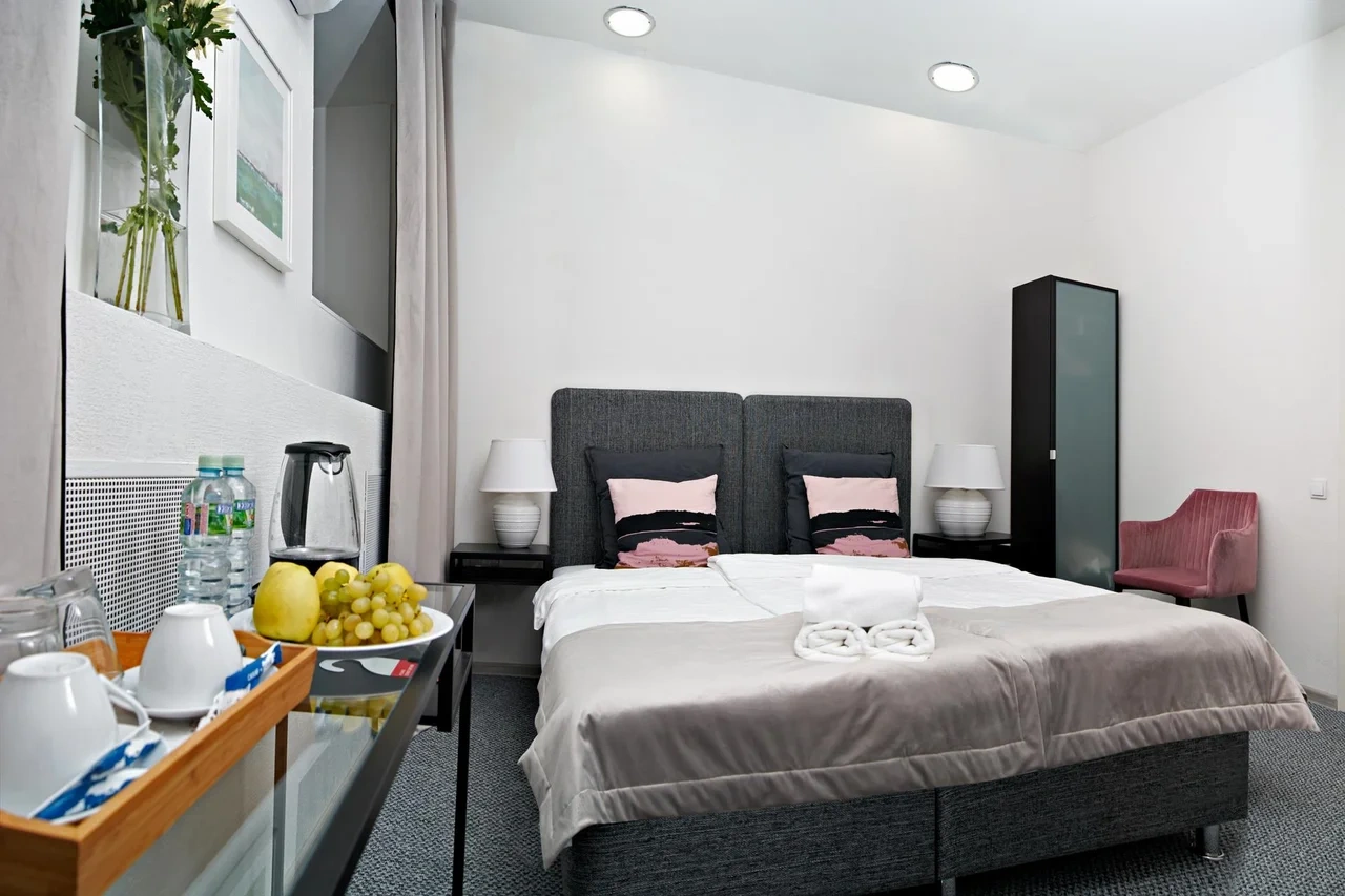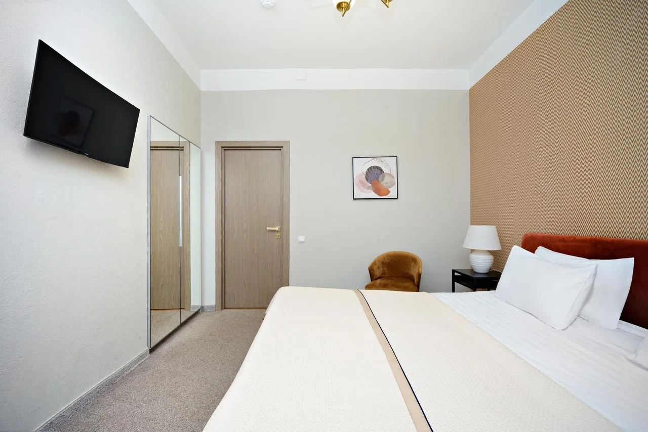 Наши номера выполнены в современном дизайнерском стиле, после полного ребрендинга выполненного в 2023 году, в каждом номере есть все для комфортного пребывания, wi-fi, смарт-тв, необходимые косметические принадлежности. Общая стиральная машина и гладильные принадлежности