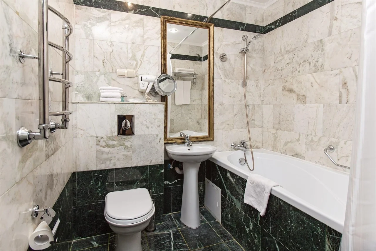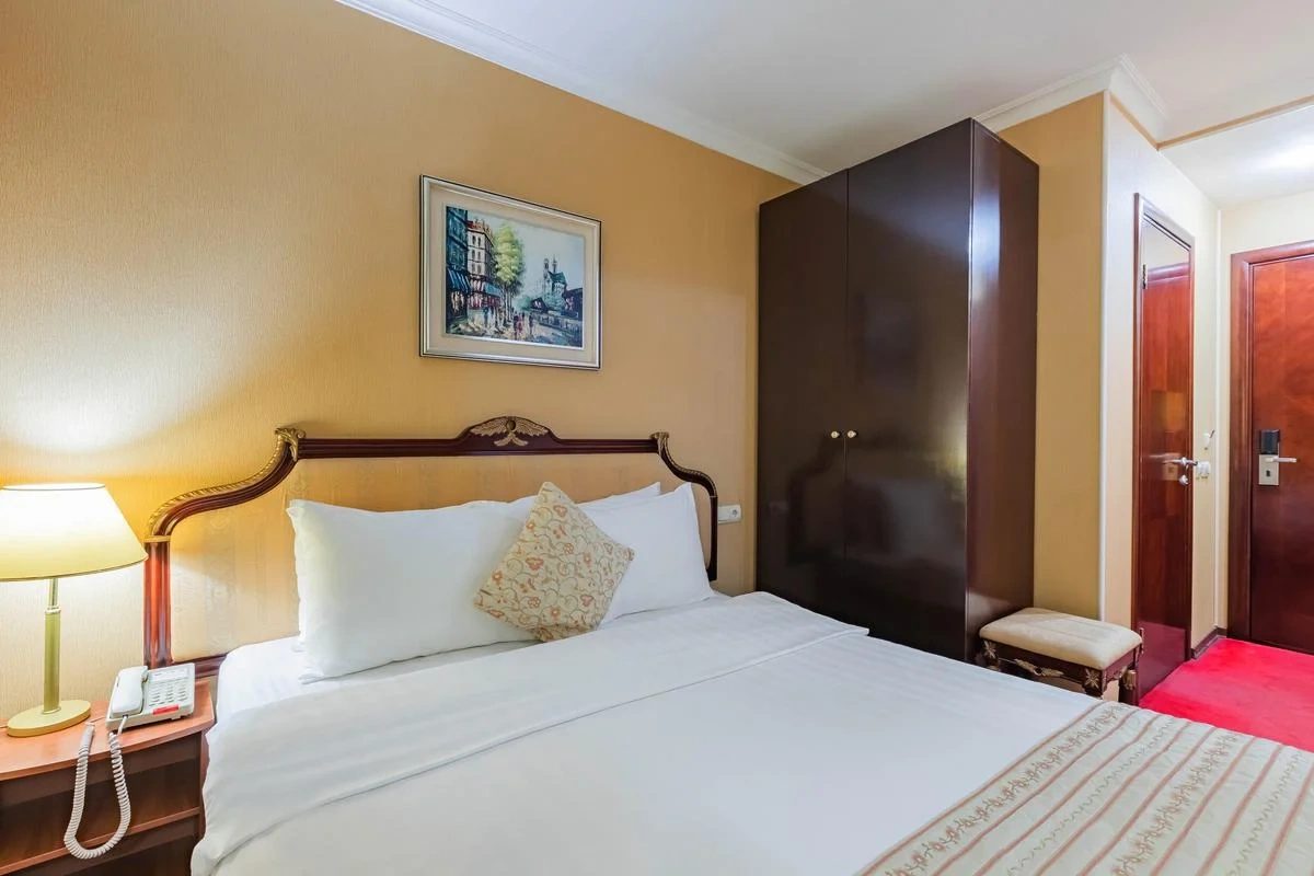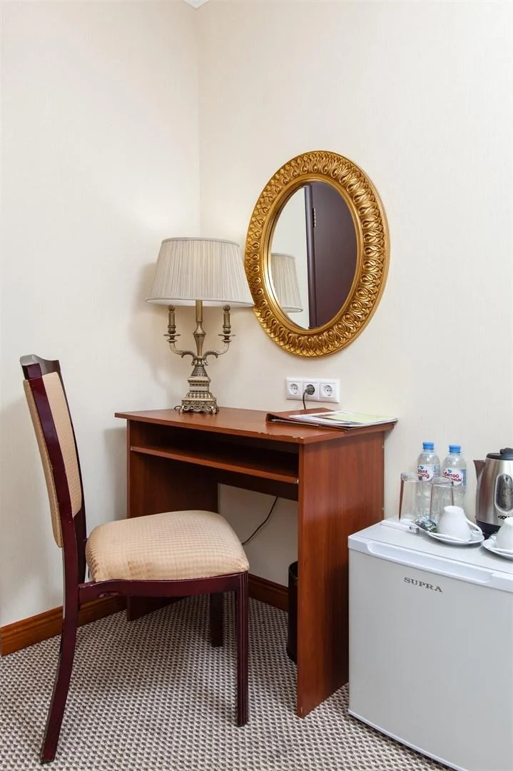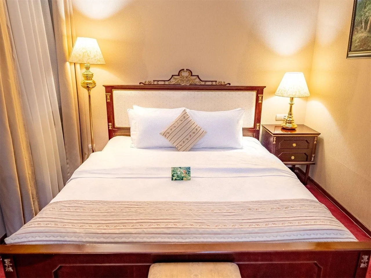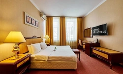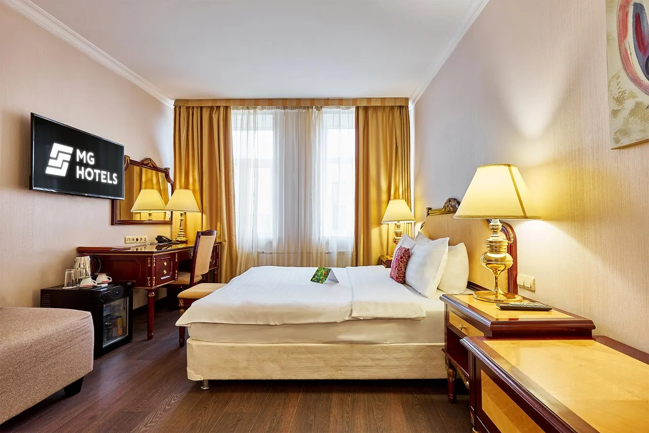 Путешествуете вдвоем? Один из лучших вариантов размещения — комфортный двухместный номер категории «улучшенный». В компактном номере нашлось место не только для комфортной двуспальной кровати с ортопедическим матрасом, но и для полноценной рабочей зоны с удобным столом и высокоскоростным беспроводным интернетом. Дизайн прост и лаконичен, но благодаря ему небольшое по площади помещение выглядит просторным и светлым. Ценные вещи и документы можно оставить в сейфе. Номера укомплектованы мини-баром, чайной станцией, телефоном, феном, гладильными принадлежностями и халатами. Ежедневно при жилой уборке происходит пополнение гигиенических принадлежностей, питьевой воды, чая и сахара. Мини-бар не входит в стоимость номера и оплачивается отдельно. Под запрос предоставляются косметический и бритвенный наборы. Окна номера выходят на тихую улицу, внутренний двор и на город, так что можете быть уверены: вашему отдыху не помешает шум.