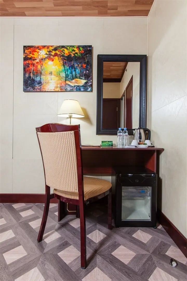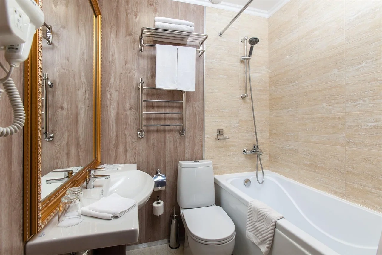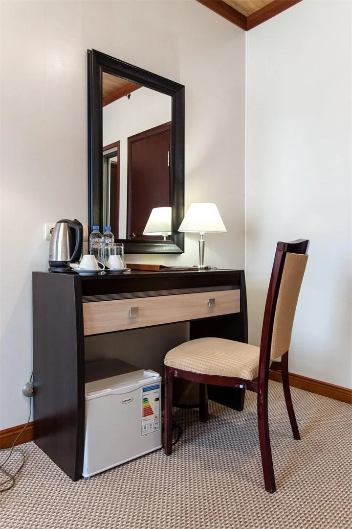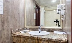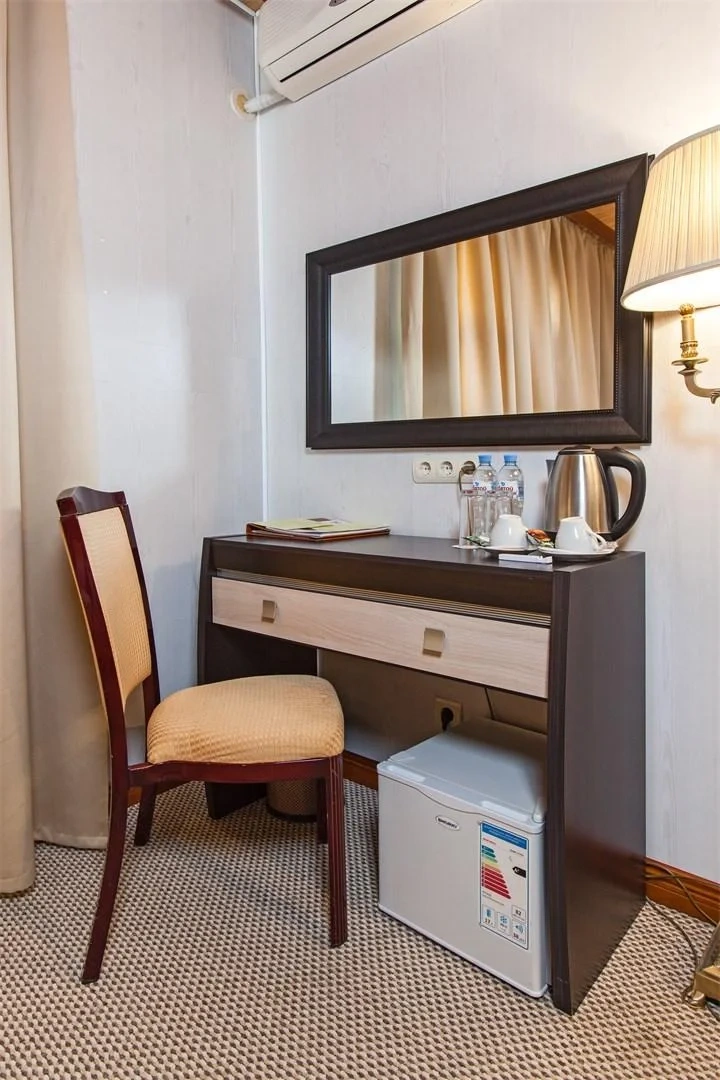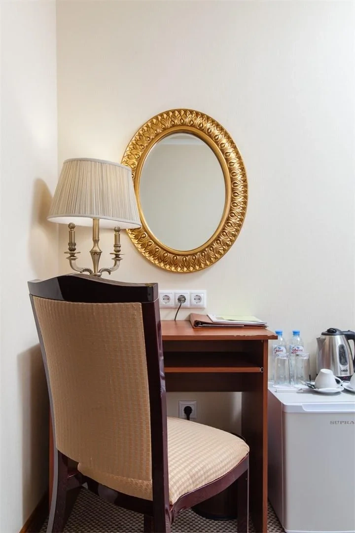 Путешествуете вдвоем? Один из лучших вариантов размещения — комфортный двухместный номер категории «улучшенный». В компактном номере нашлось место не только для комфортной двуспальной кровати с ортопедическим матрасом, но и для полноценной рабочей зоны с удобным столом и высокоскоростным беспроводным интернетом. Дизайн прост и лаконичен, но благодаря ему небольшое по площади помещение выглядит просторным и светлым. Ценные вещи и документы можно оставить в сейфе. Номера укомплектованы мини-баром, чайной станцией, телефоном, феном, гладильными принадлежностями и халатами. Ежедневно при жилой уборке происходит пополнение гигиенических принадлежностей, питьевой воды, чая и сахара. Мини-бар не входит в стоимость номера и оплачивается отдельно. Под запрос предоставляются косметический и бритвенный наборы. Окна номера выходят на тихую улицу, внутренний двор и на город, так что можете быть уверены: вашему отдыху не помешает шум.