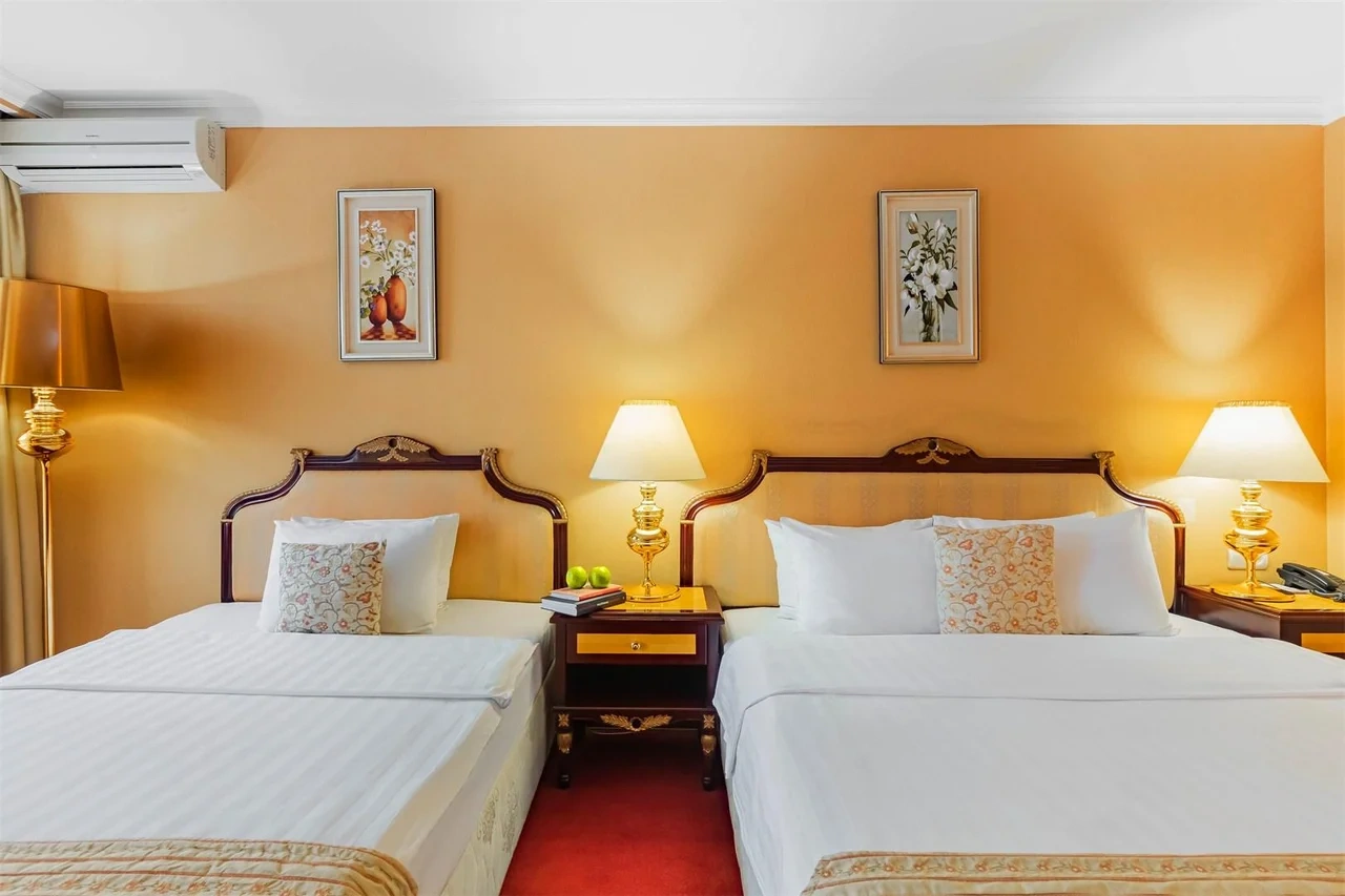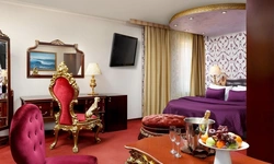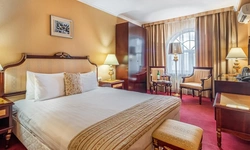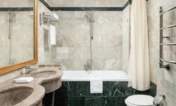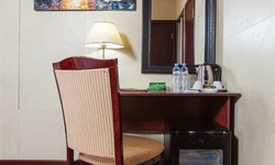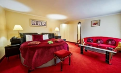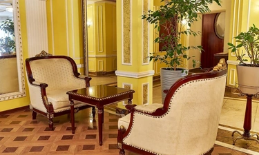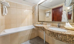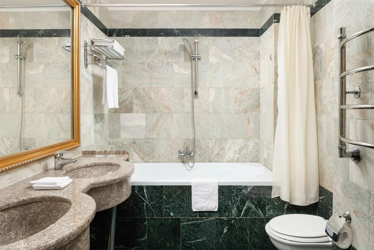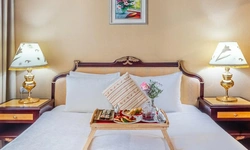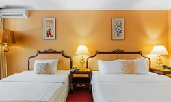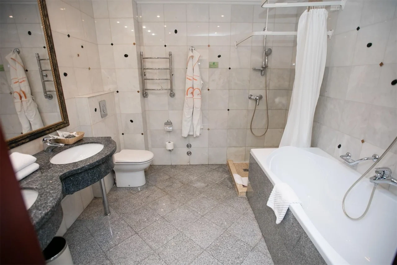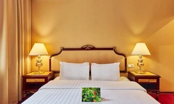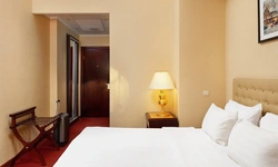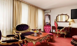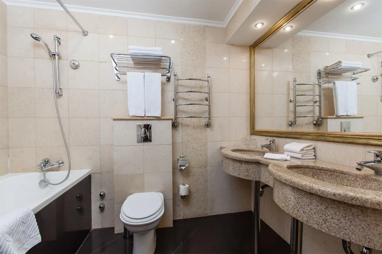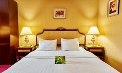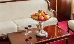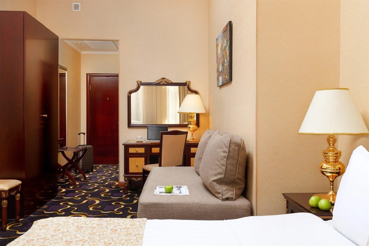 Просторный «семейный» двухкомнатный номер с двумя комфортными кроватями размера «King size» — оптимальный вариант размещения для семьи с детьми или небольшой компании до 6 человек. Интерьер выдержан в элегантных, золотисто-бежевых и винных оттенках, располагает к комфортному отдыху. Удобные кровати оснащены ортопедическими матрасами. Если вам понадобится поработать — можно воспользоваться удобным столом в рабочей зоне. Уходя на прогулку, вы можете оставить документы и ценности в мини-сейфе. В номере есть телевизор с интерактивным спутниковым ТВ, высокоскоростной интернет. Также номер укомплектованы мини-баром, чайной станцией, телефоном, феном, гладильными принадлежностями и халатами. Ежедневно при жилой уборке происходит пополнение гигиенических принадлежностей, питьевой воды, чая и сахара. Мини-бар не входит в стоимость номера и оплачивается отдельно. Под запрос предоставляются косметический и бритвенный наборы. Окна номера выходят во внутренний двор, так что можете быть уверены: вашему отдыху не помешает шум.