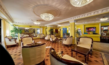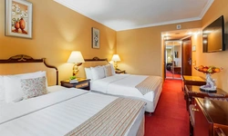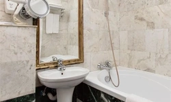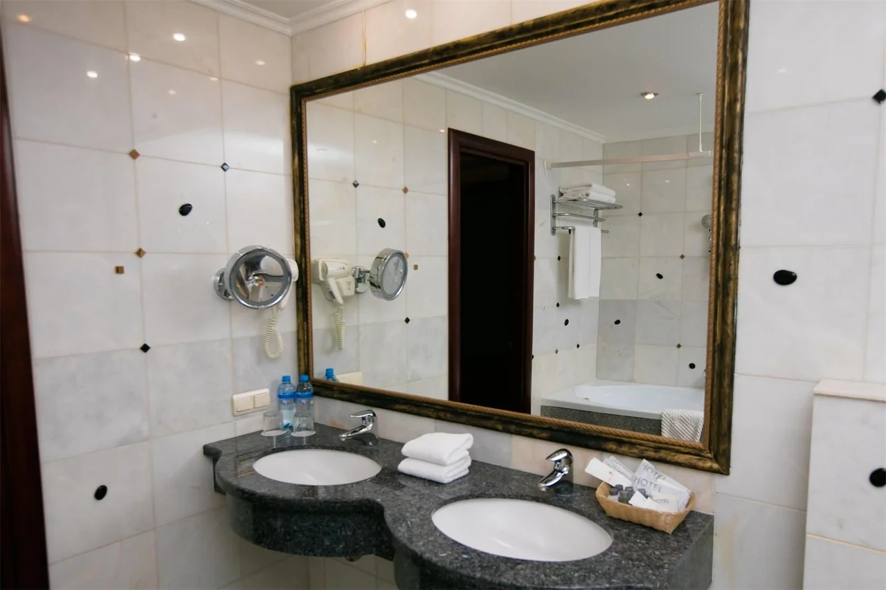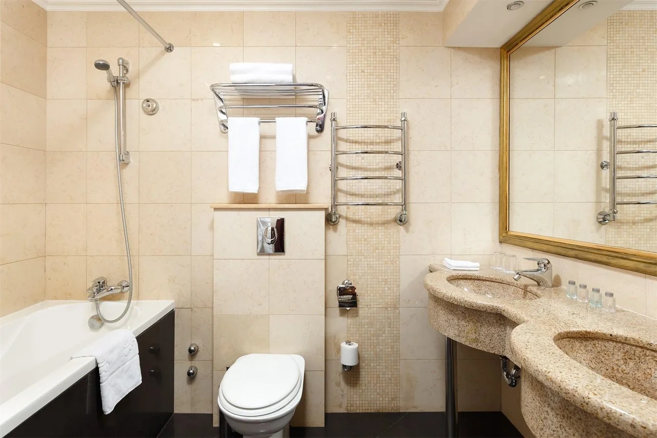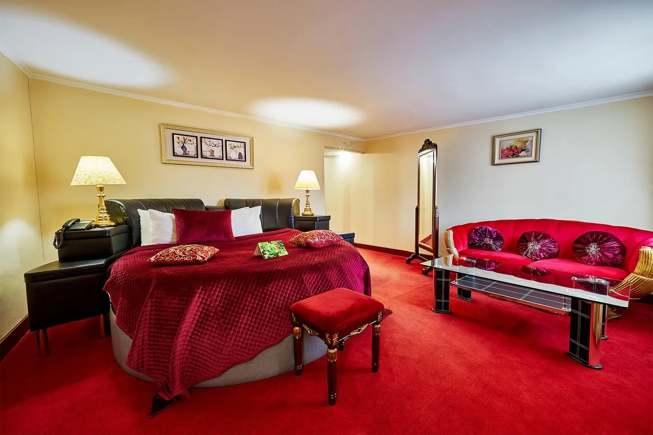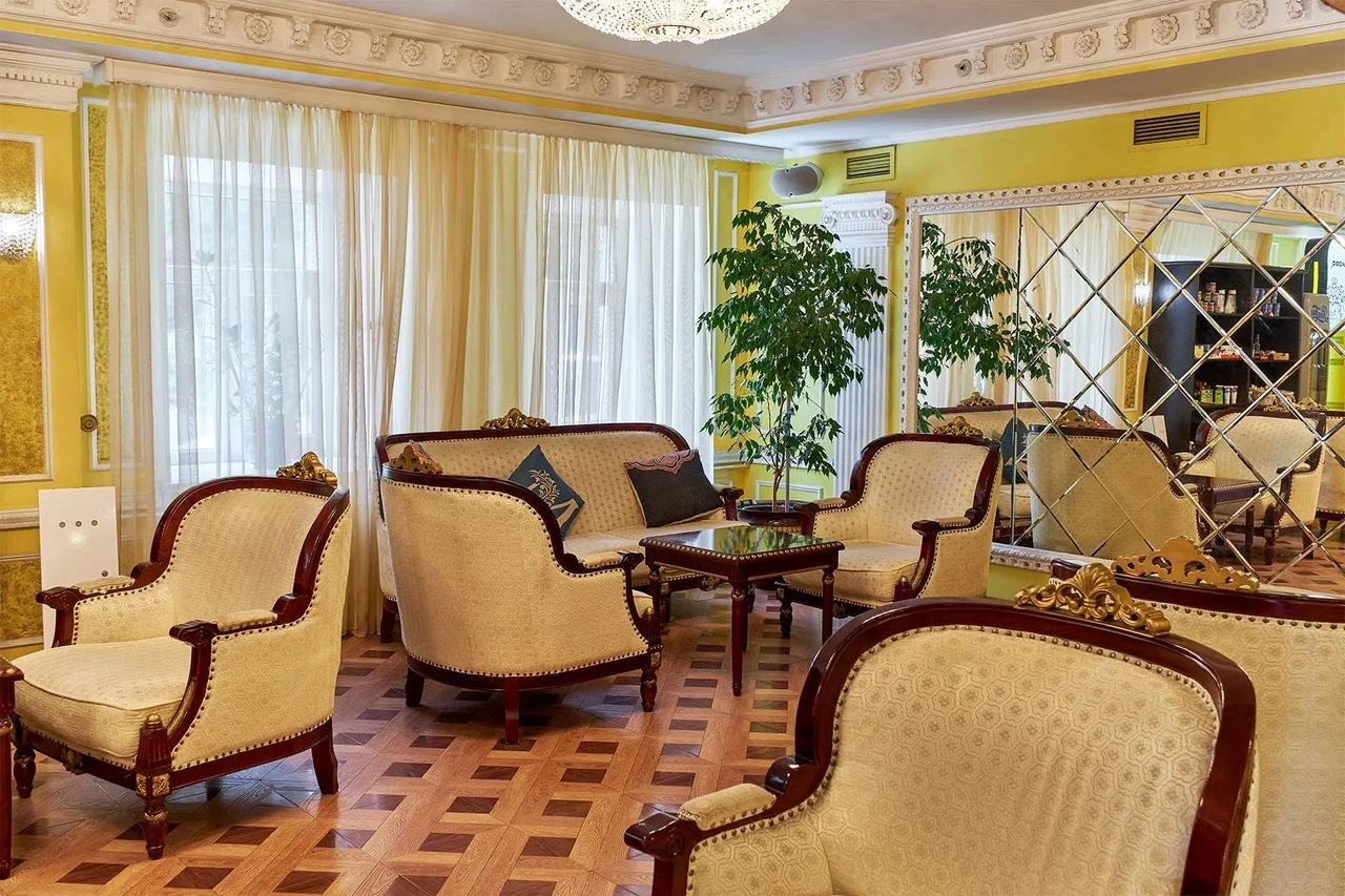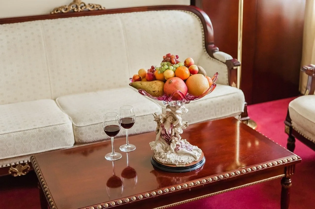 Просторный «семейный» двухкомнатный номер с двумя комфортными кроватями размера «King size» — оптимальный вариант размещения для семьи с детьми или небольшой компании до 6 человек. Интерьер выдержан в элегантных, золотисто-бежевых и винных оттенках, располагает к комфортному отдыху. Удобные кровати оснащены ортопедическими матрасами. Если вам понадобится поработать — можно воспользоваться удобным столом в рабочей зоне. Уходя на прогулку, вы можете оставить документы и ценности в мини-сейфе. В номере есть телевизор с интерактивным спутниковым ТВ, высокоскоростной интернет. Также номер укомплектованы мини-баром, чайной станцией, телефоном, феном, гладильными принадлежностями и халатами. Ежедневно при жилой уборке происходит пополнение гигиенических принадлежностей, питьевой воды, чая и сахара. Мини-бар не входит в стоимость номера и оплачивается отдельно. Под запрос предоставляются косметический и бритвенный наборы. Окна номера выходят во внутренний двор, так что можете быть уверены: вашему отдыху не помешает шум.