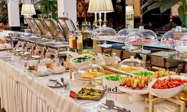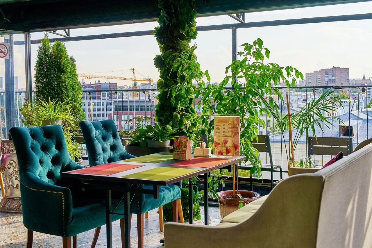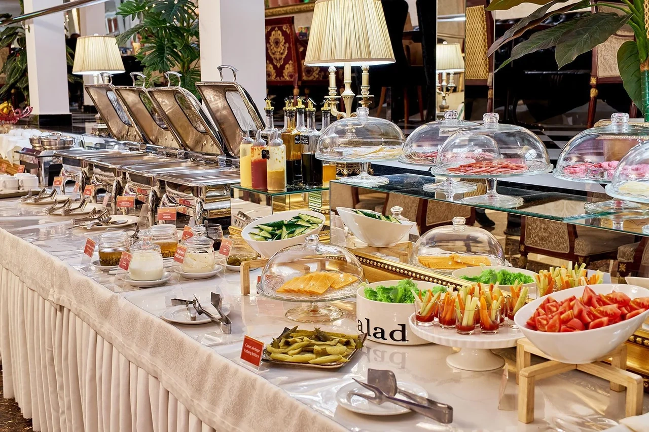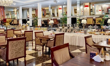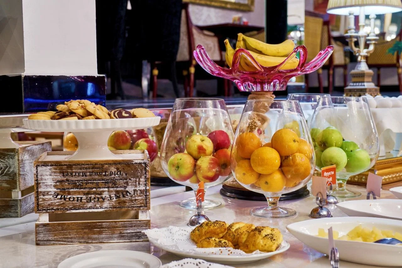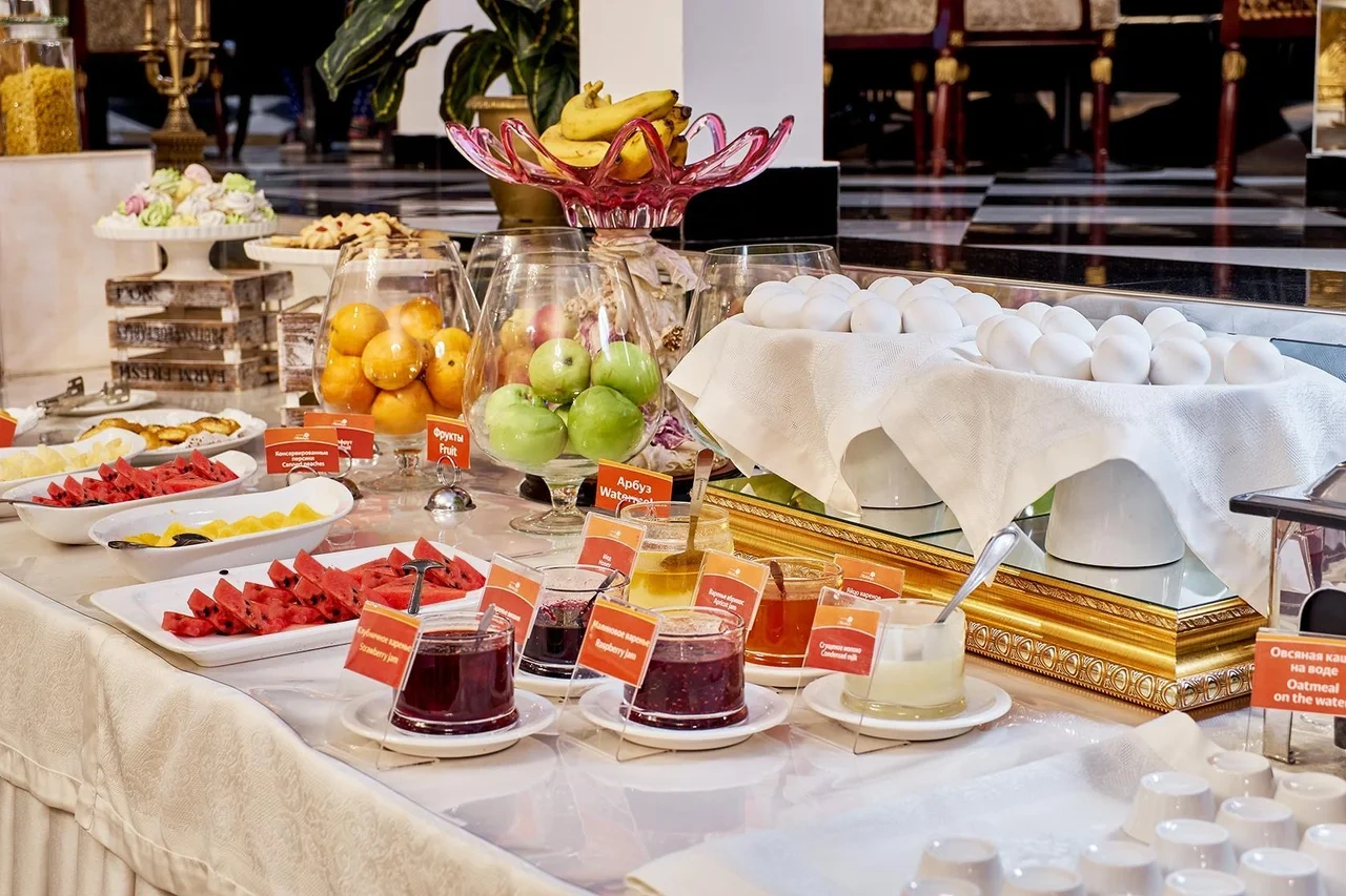 На территории отеля для всех желающих находятся круглосуточный ресторан европейской и кавказской кухни, кафе, винный бар, кофейня, Mandarin Lounge, бар-ресторан на 8 этаже отеля на террасе с панорамными окнами, открывающими вид на сталинские высотки. В ресторанах отеля подают авторские коктейли, блюда на гриле и пиццу. Room service доступен круглосуточно.