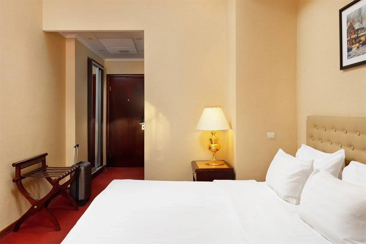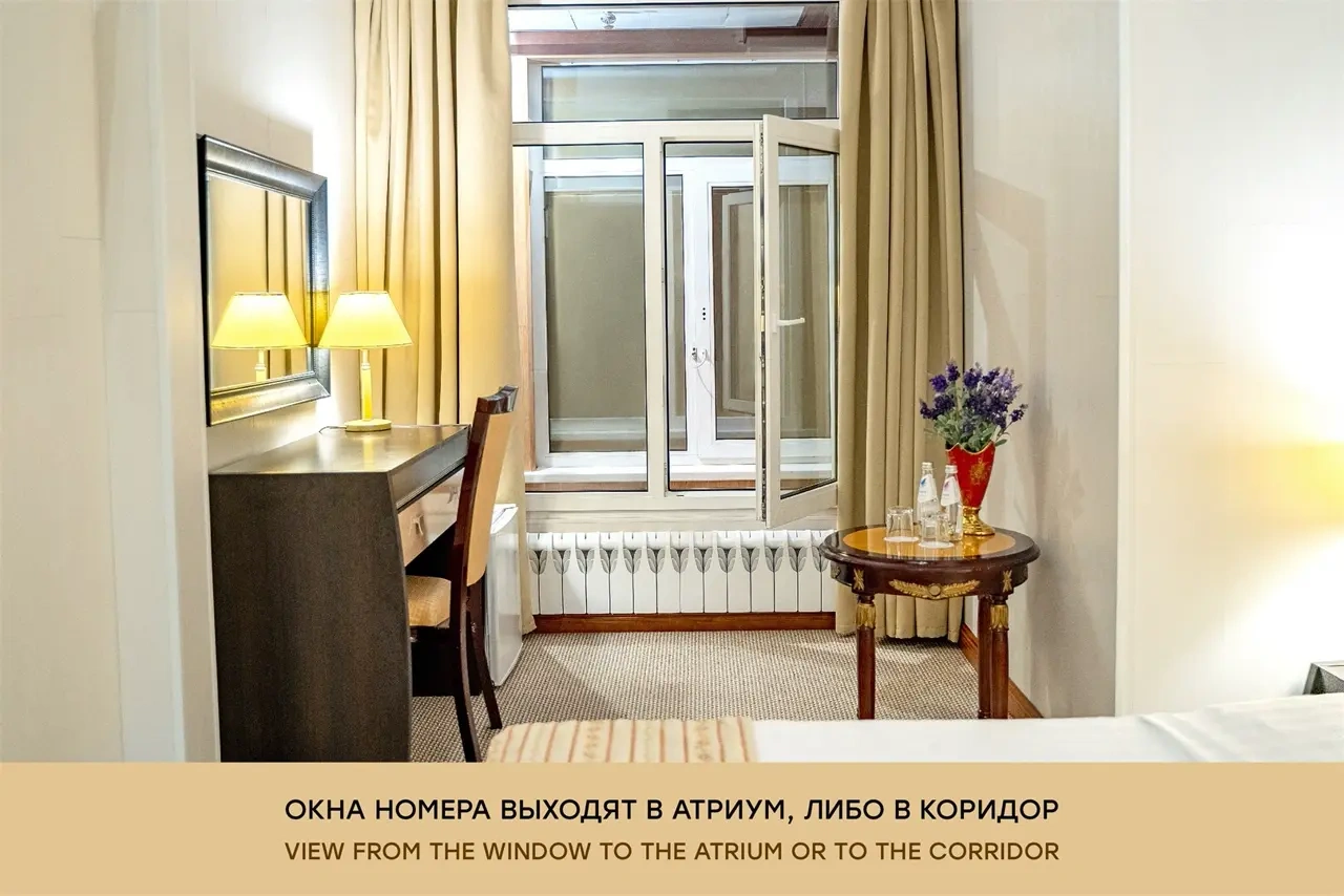 Уютный двухместный номер категории «Стандарт» – прекрасный вариант для недорогого, но комфортного размещения двух человек. В таком номере все располагает к комфортному отдыху: продуманный интерьер создает уют, комфортная кровать - 1 двуспальная (160см*200см либо 180см*200см) или две раздельные (90см*200см либо 120см*200см) с современным ортопедическим матрасом обещает крепкий сон. Плазменная панель и доступ к интерактивному спутниковому телевидению разнообразят досуг. Если в поездке вам нужно поработать — в вашем распоряжении удобный рабочий стол и высокоскоростной беспроводной интернет. Ценные вещи и документы можно оставить в сейфе. Также номера укомплектованы мини-баром, чайной станцией, телефоном, феном, гладильными принадлежностями. Ежедневно при жилой уборке происходит пополнение гигиенических принадлежностей, питьевой воды, чая и сахара. Мини-бар не входит в стоимость номера и оплачивается отдельно. Под запрос предоставляются халаты, косметический и бритвенный наборы. Окна номеров категории «Стандарт» выходят в уютный атриум отеля либо в коридор — вашему отдыху не помешает шум!