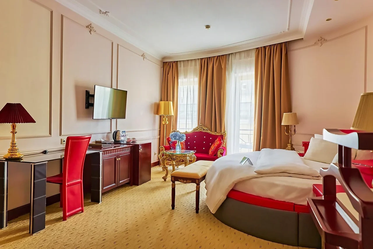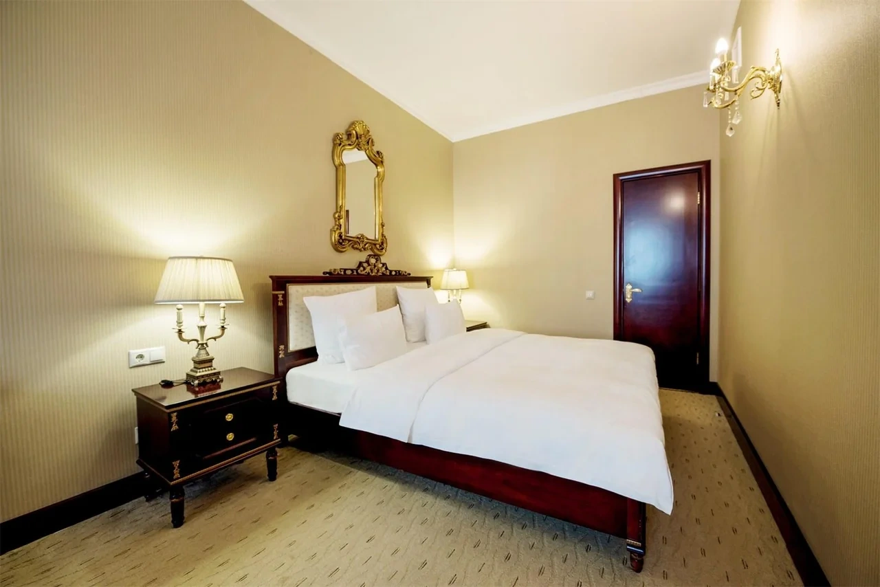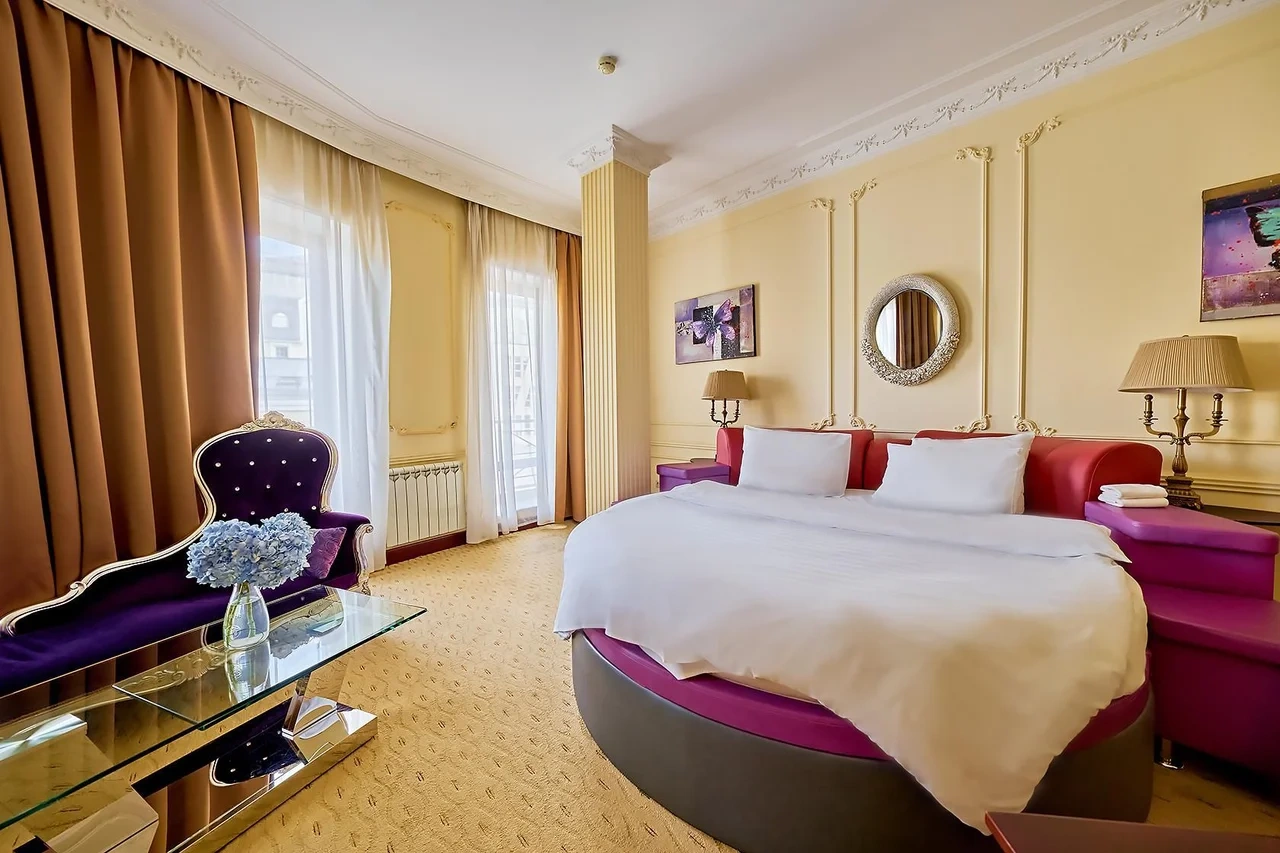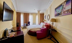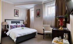 Идеально подходит для деловых людей: уверенное достоинство классического интерьера, удачная планировка вкупе с гостиничным сервисом, технической оснащенностью и свободным доступом в Интернет позволяет, при желании, устроить мини-офис и успешно вести бизнес прямо из номера. Возможные типы кроватей: круглая и квадратная