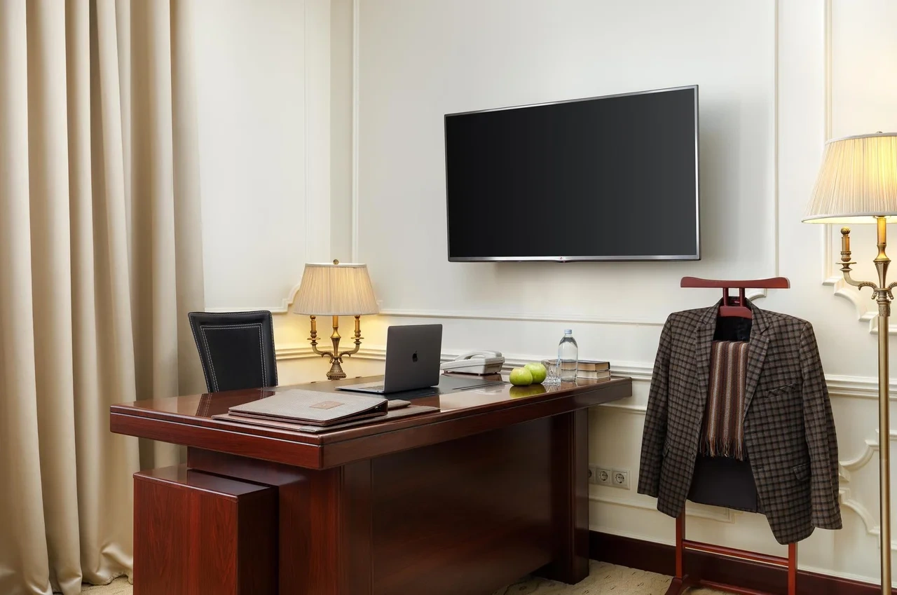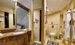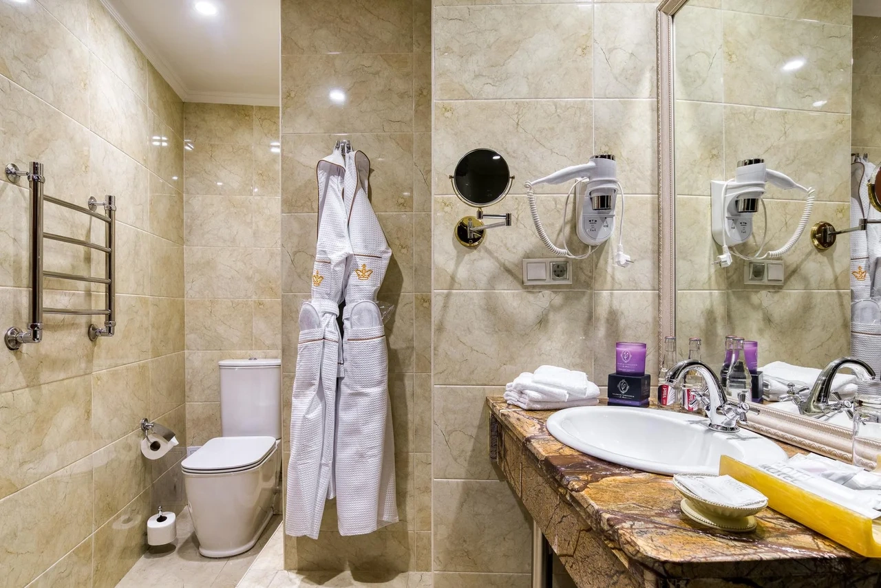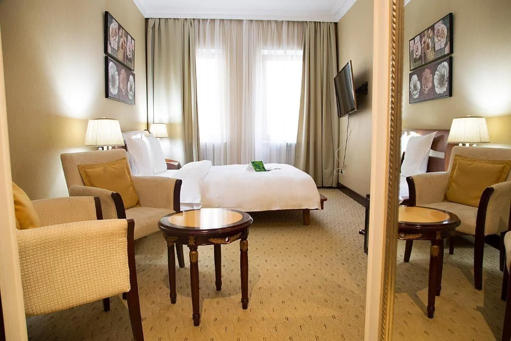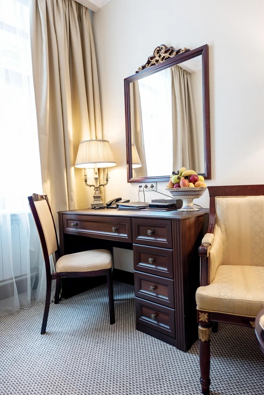 Идеально подходит для деловых людей: уверенное достоинство классического интерьера, удачная планировка вкупе с гостиничным сервисом, технической оснащенностью и свободным доступом в Интернет позволяет, при желании, устроить мини-офис и успешно вести бизнес прямо из номера. Возможные типы кроватей: круглая и квадратная