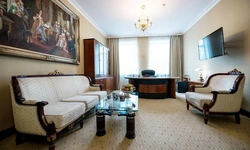 Великолепные апартаменты общей площадью до 60 квадратных метров представлены в классическом дизайне. Пространство гостиной удачно разделено на комфортную зону отдыха и рабочий кабинет. Для Вашего безупречного отдыха номер располагает спальней с двумя двуспальными кроватями, просторной гостиной, удобной рабочей зоной, ванной комнатой с ванной, биде и двумя раковинами, и видом на Николоямскую улицу. Идеальный вариант для длительного семейного проживания. Типы кроватей: две кровати King Size. Возможно установка дополнительных спальных мест.
