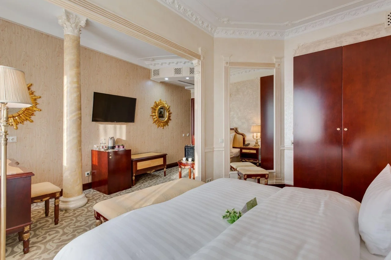Номер самой востребованной категории с размещением twin. Высокие потолки, классический интерьер, итальянская мебель и премиальный текстиль, вся положенная пятизвездочному номеру техника. Здесь вы найдете комфорт, полноценный отдых и вдохновение для плодотворной работы