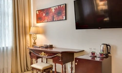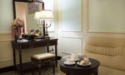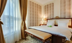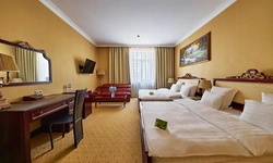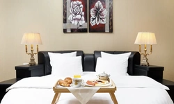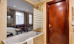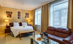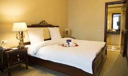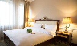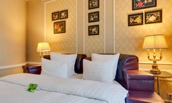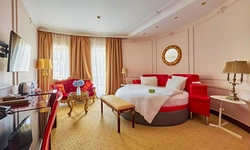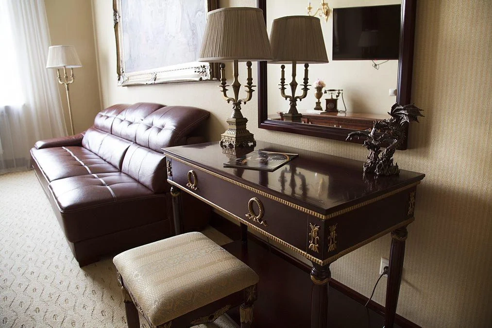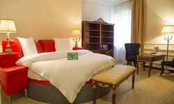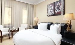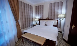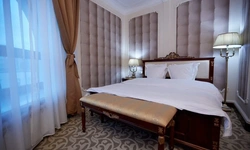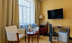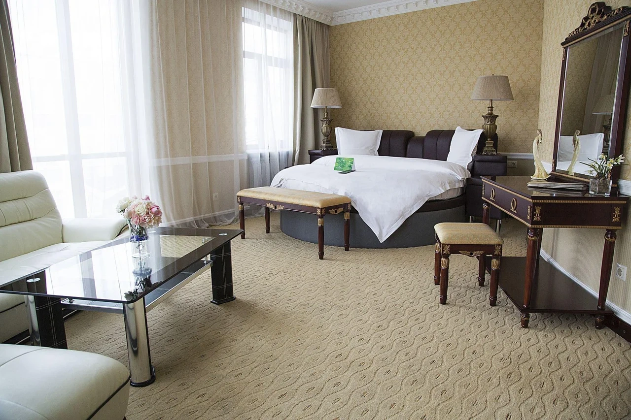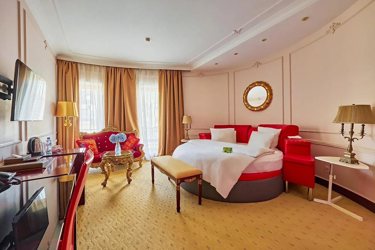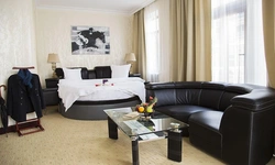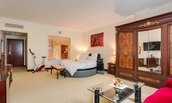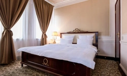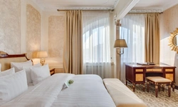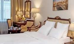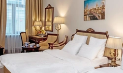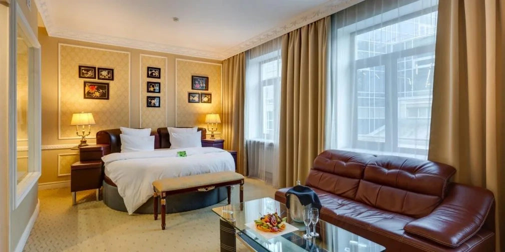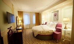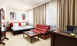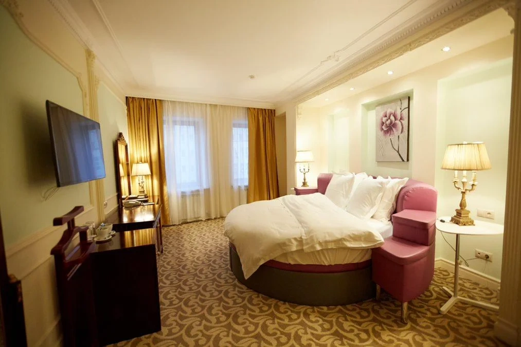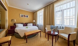 Идеально подходит для деловых людей: уверенное достоинство классического интерьера, удачная планировка вкупе с гостиничным сервисом, технической оснащенностью и свободным доступом в Интернет позволяет, при желании, устроить мини-офис и успешно вести бизнес прямо из номера. Возможные типы кроватей: круглая и квадратная