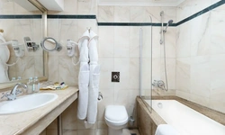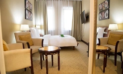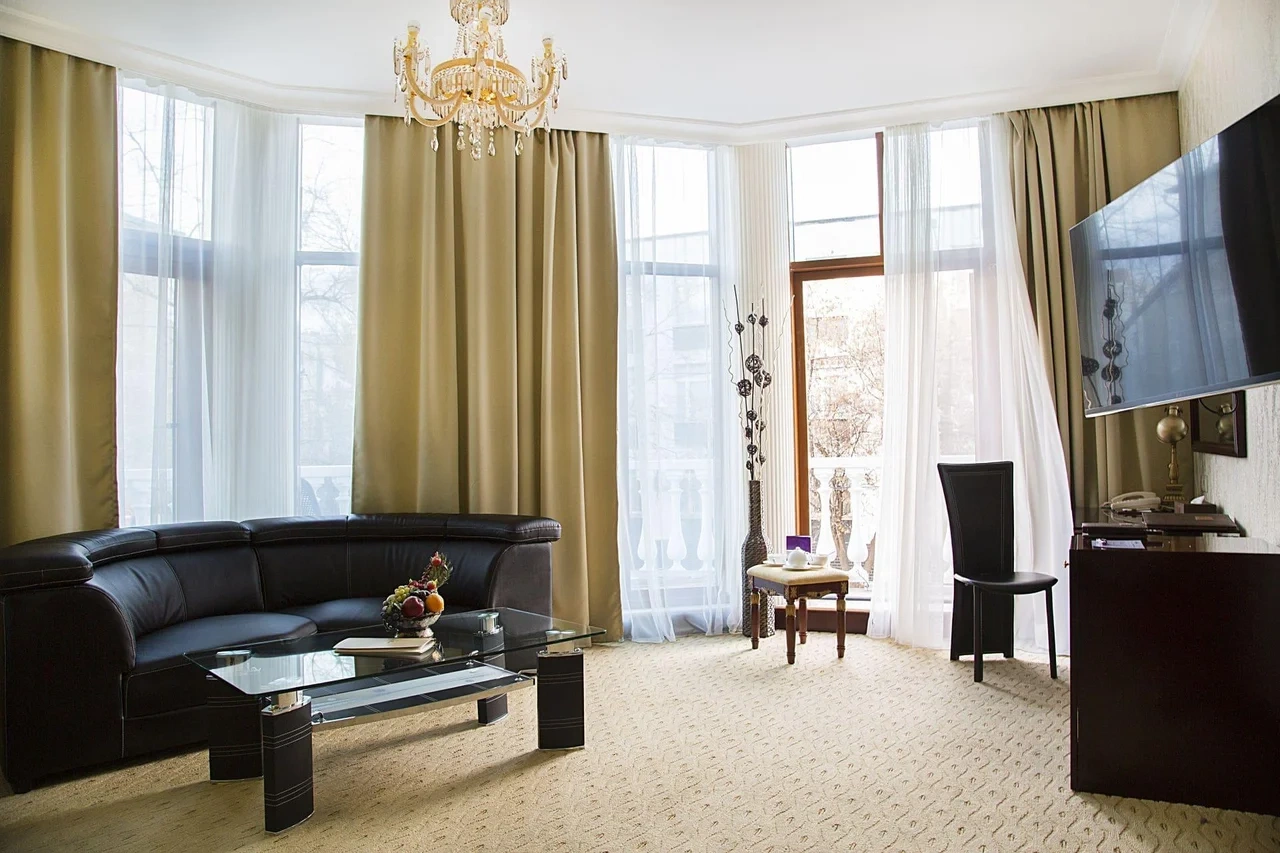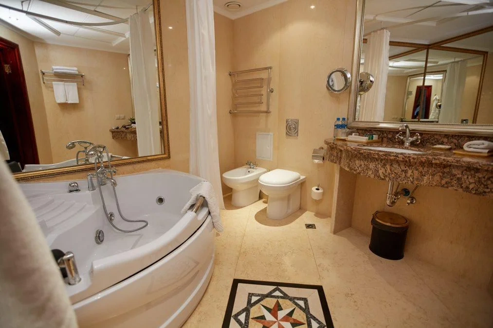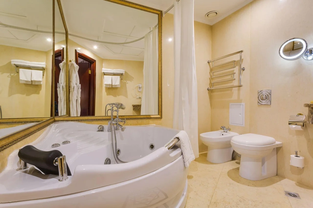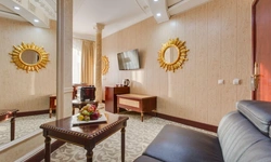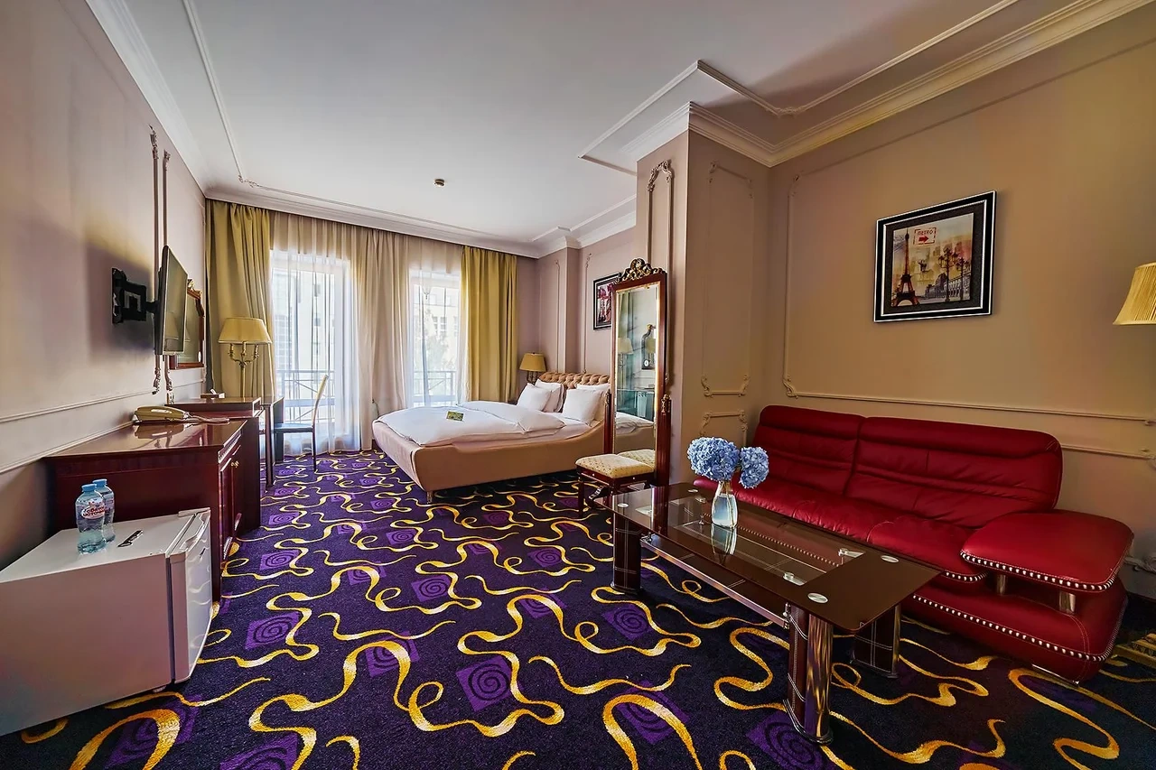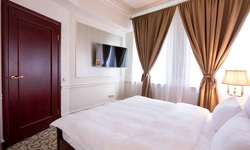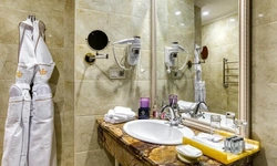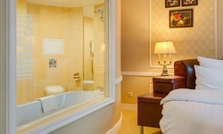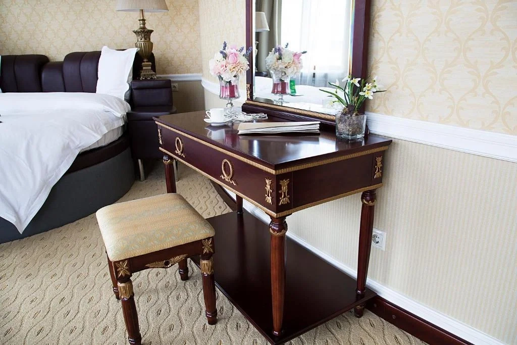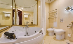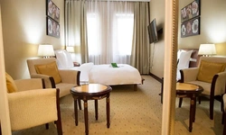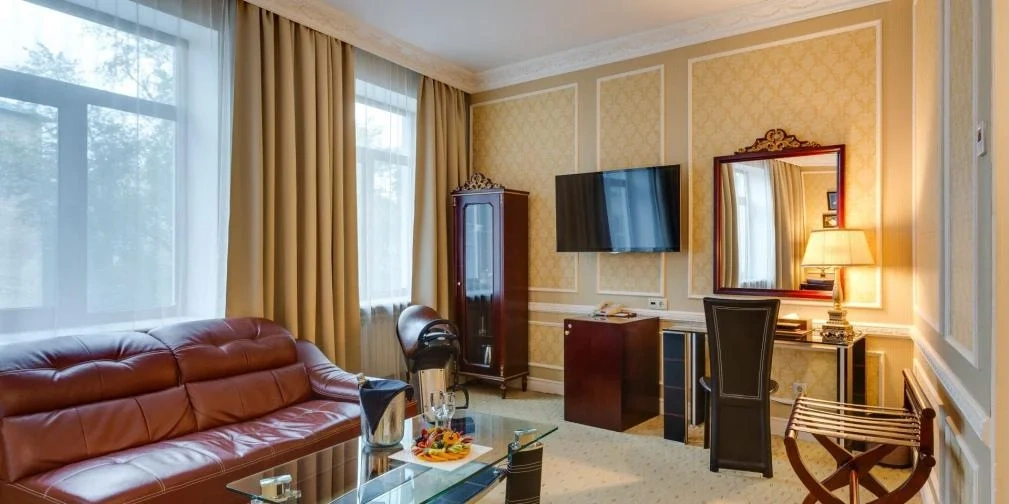 Идеально подходит для деловых людей: уверенное достоинство классического интерьера, удачная планировка вкупе с гостиничным сервисом, технической оснащенностью и свободным доступом в Интернет позволяет, при желании, устроить мини-офис и успешно вести бизнес прямо из номера. Возможные типы кроватей: круглая и квадратная
