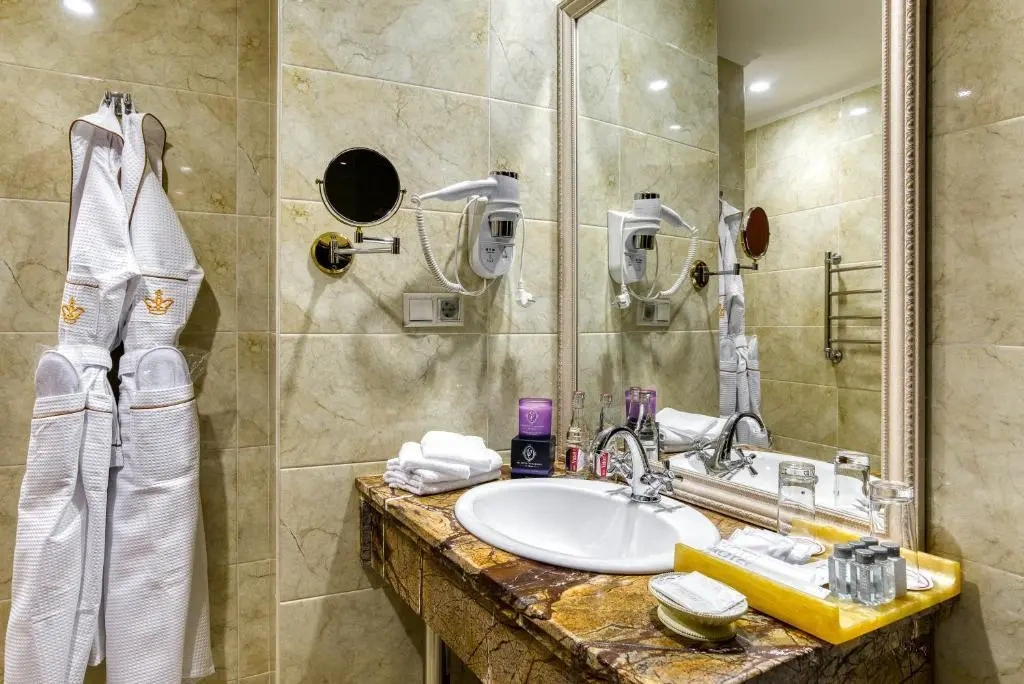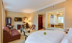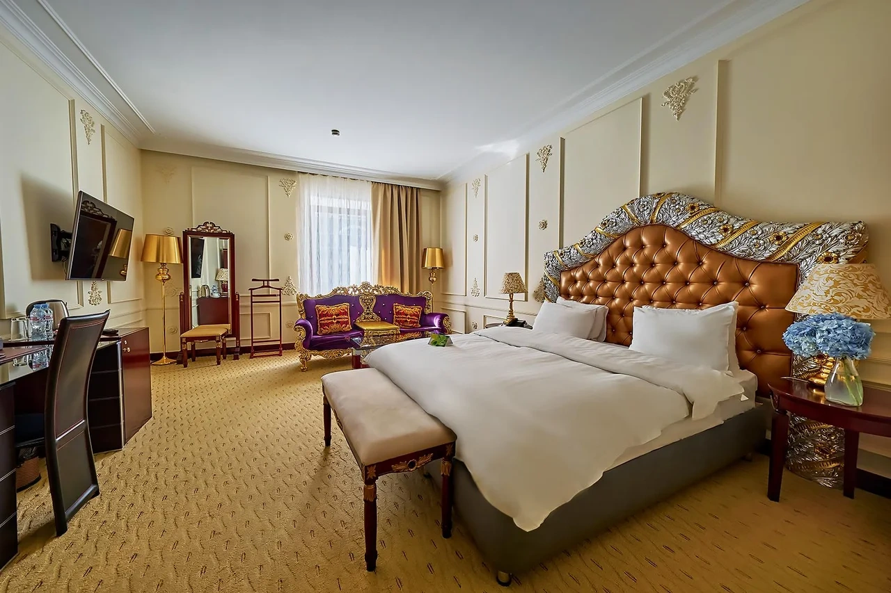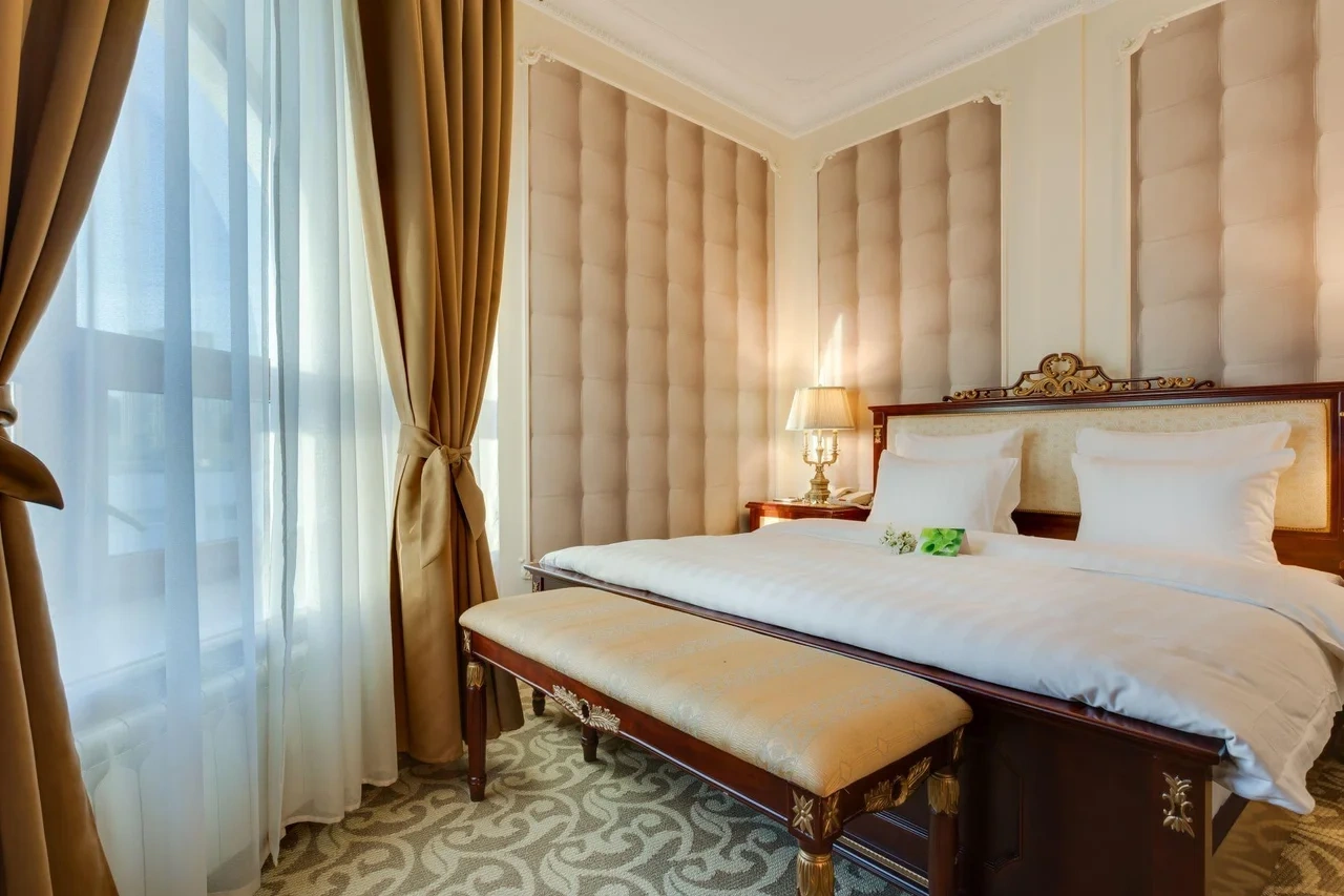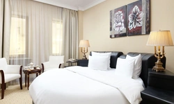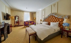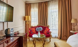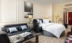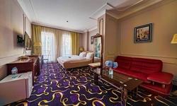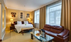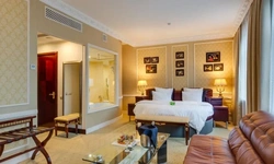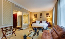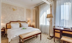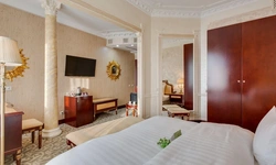 Превосходные Люксы с высокими потолками и великолепными видами. Мебель, текстиль, техника и атрибуты декора, кроме создания комфорта, служат представительским целям. Каждая деталь номера заявляет о высоком статусе гостя, который здесь остановился. Тип кровати: King Size
