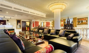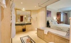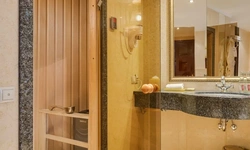 Большой, роскошный номер с индивидуальной сауной из натурального дерева. Удобное зонирование создает впечатление открытого, дышащего интерьера, где пространство буквально перетекает из одной зоны в другую. Роскошная мебель и изысканный текстиль – атрибуты настоящей частной резиденции. Тип кровати: круглая