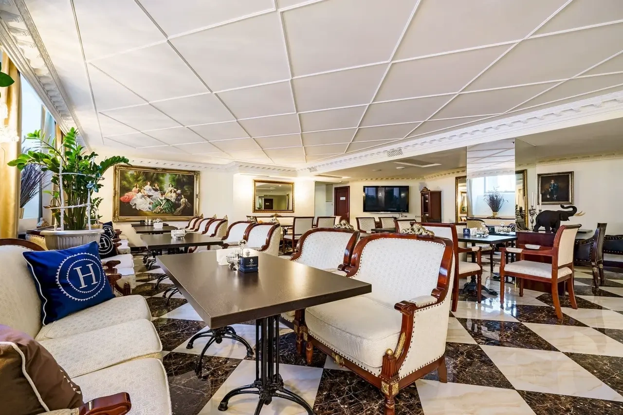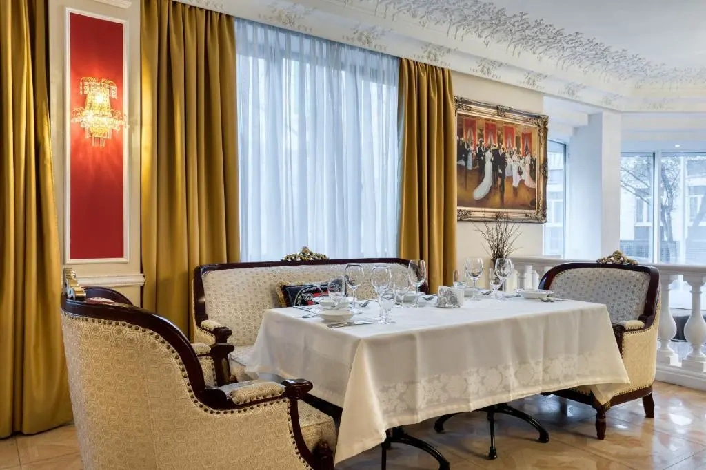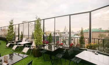 На территории отеля работает круглосуточный ресторан Lounge бар, кафе, бар-ресторан на 6 этаже отеля на открытой террасе, с которой открывается один из самых вдохновляющих видов на Москву и сталинские высотки. Room service доступен круглосуточно.