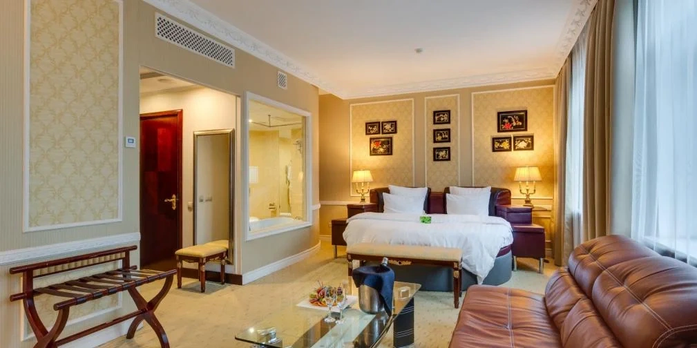 Двухместный однокомнатный номер большого размера, улучшенной планировки и с более дорогой обстановкой, позволяющий установить дополнительное спальное место. Возможные типы кроватей: круглые либо квадратные