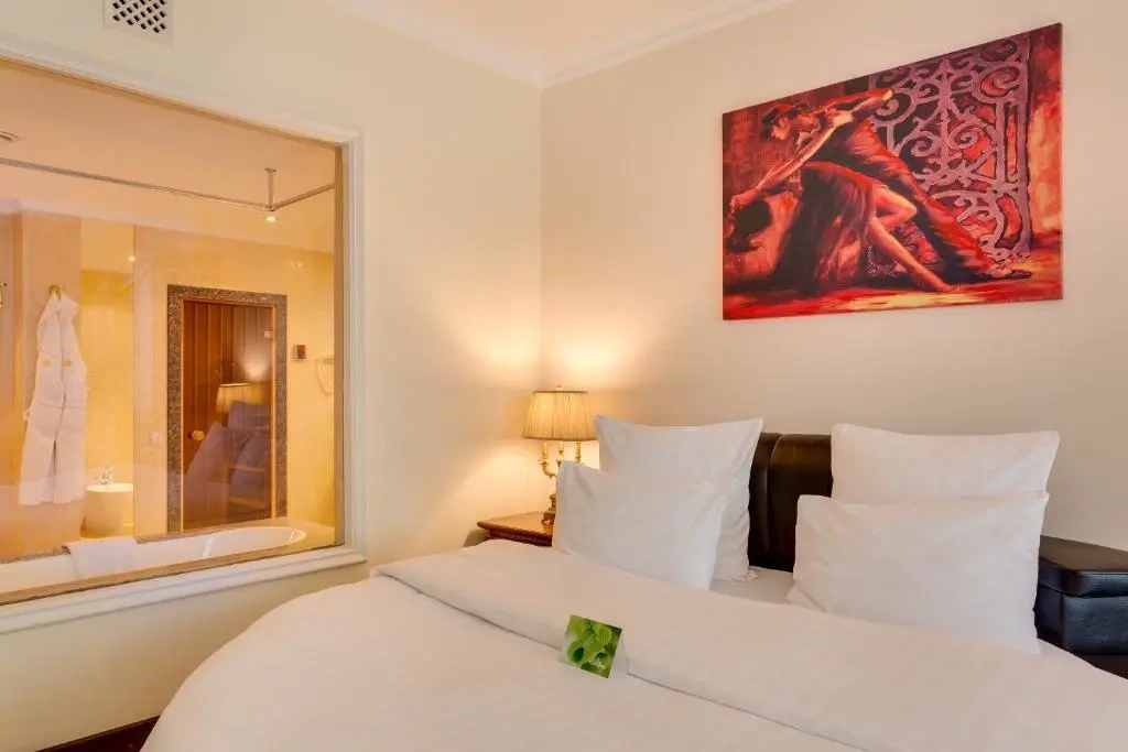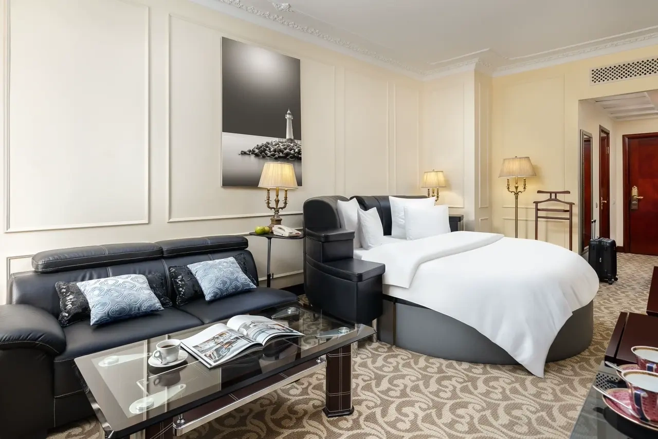 Просторные номера, каждый из которых отличается индивидуальным дизайном, эргономичное постельное белье, наполненная светом и отделанная мрамором ванная комната, рабочий стол, чайные принадлежности… Здесь так легко переходить от работы к отдыху и, восстановив силы, снова возвращаться к активной деятельности. Типы кроватей: круглая и квадратная