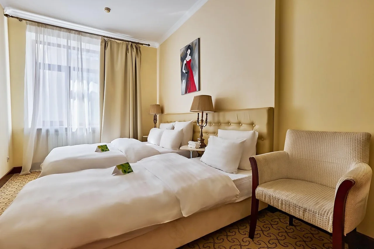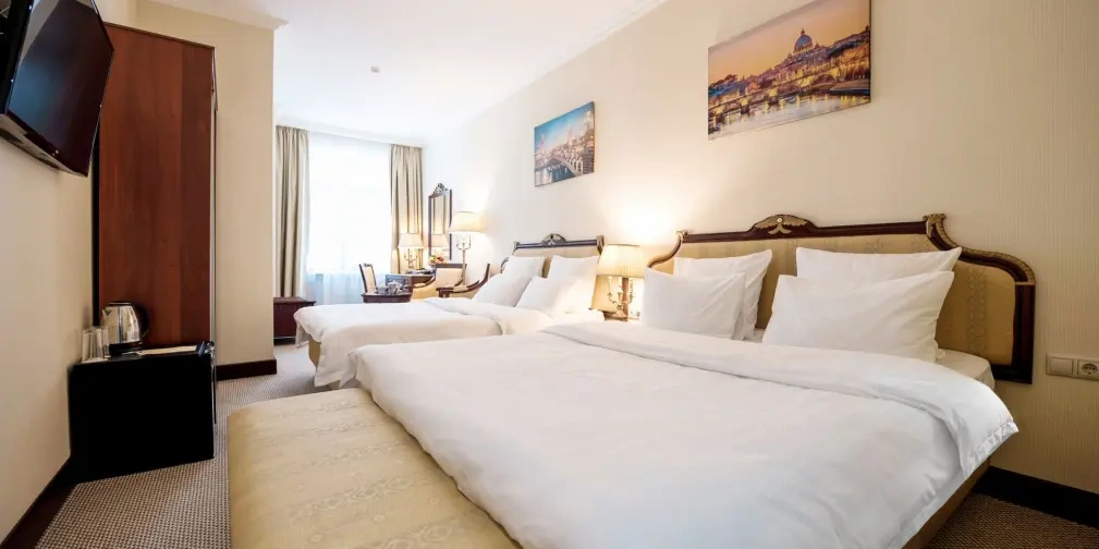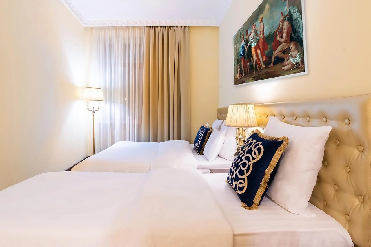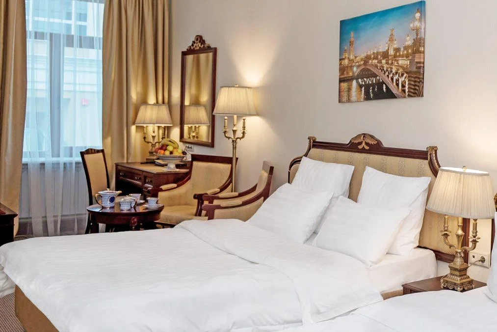 Номер самой востребованной категории с размещением twin. Высокие потолки, классический интерьер, итальянская мебель и премиальный текстиль, вся положенная пятизвездочному номеру техника. Здесь вы найдете комфорт, полноценный отдых и вдохновение для плодотворной работы