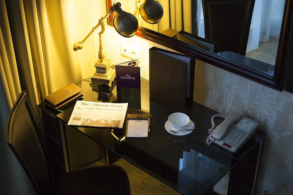 В бутик-отеле более 70 авторских элегантных номеров. Картины великих художников, антикварные аксессуары и Дизайнерская мебель – каждый номер является уникальным и неповторимым, именно поэтому постояльцы в приятном предвкушении хотят возвращаться в бутик-отель «The Rooms» вновь и вновь. В номерах установлены кондиционеры, телевизоры, сейфы, Wi-Fi, мини-бары, чайные станции, гладильные принадлежности, фены и одноразовыми гигиеническими принадлежностями.