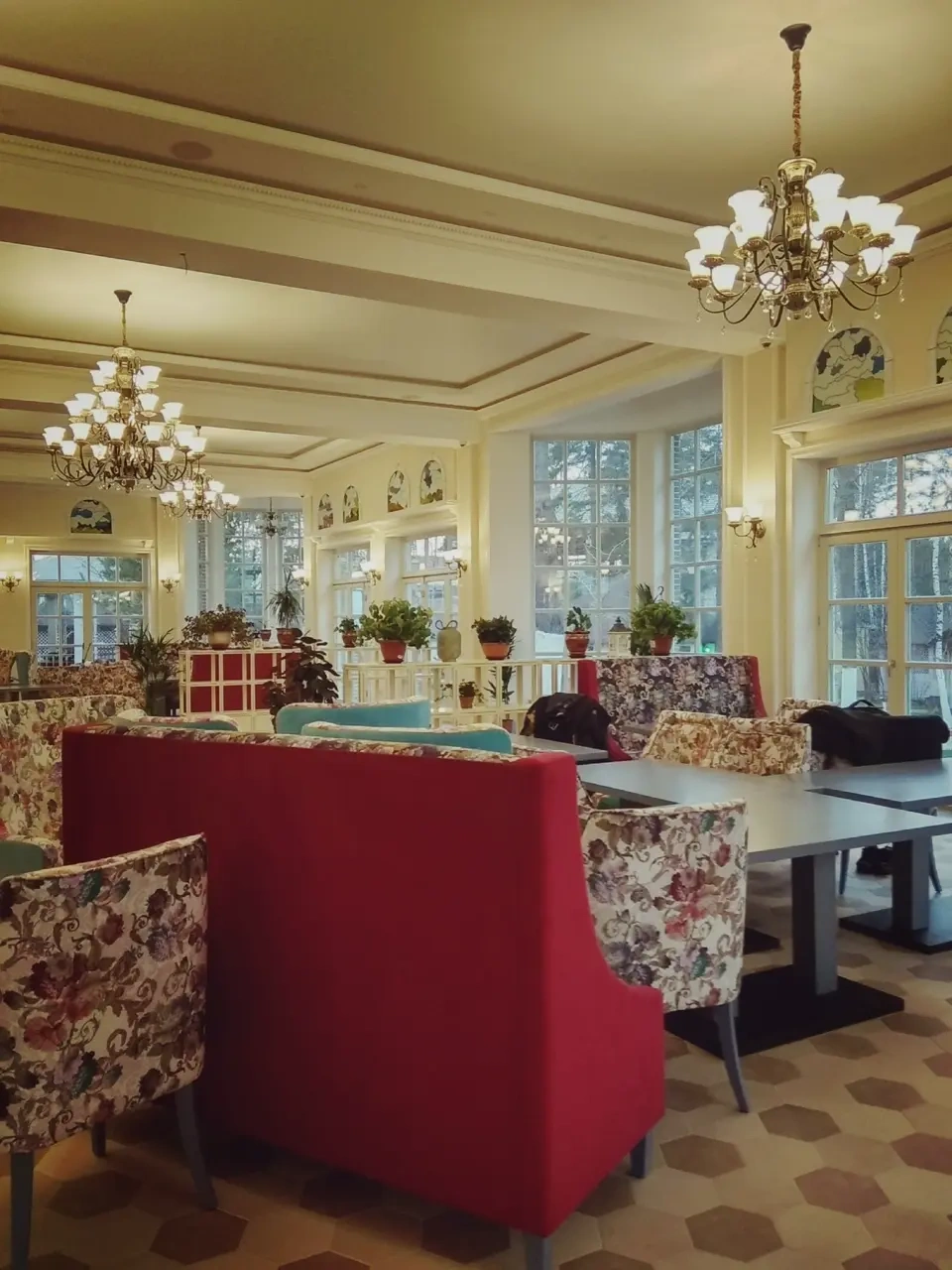 Работает ресторан, в котором по меню предоставляются блюда русской и кавказской кухни. Также есть спорт-бар, где можно заказать напитки и закуски. В пешей доступности есть продуктовый магазин.