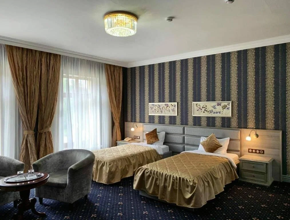 Современный номерной фонд состоит из 30 номеров, которые полностью оснащены для продолжительного и комфортного проживания. В каждой комнате установлены удобные кровати с белоснежным постельным бельем, кондиционер и телевизор. В индивидуальной ванной можно воспользоваться набором средств личной гигиены.