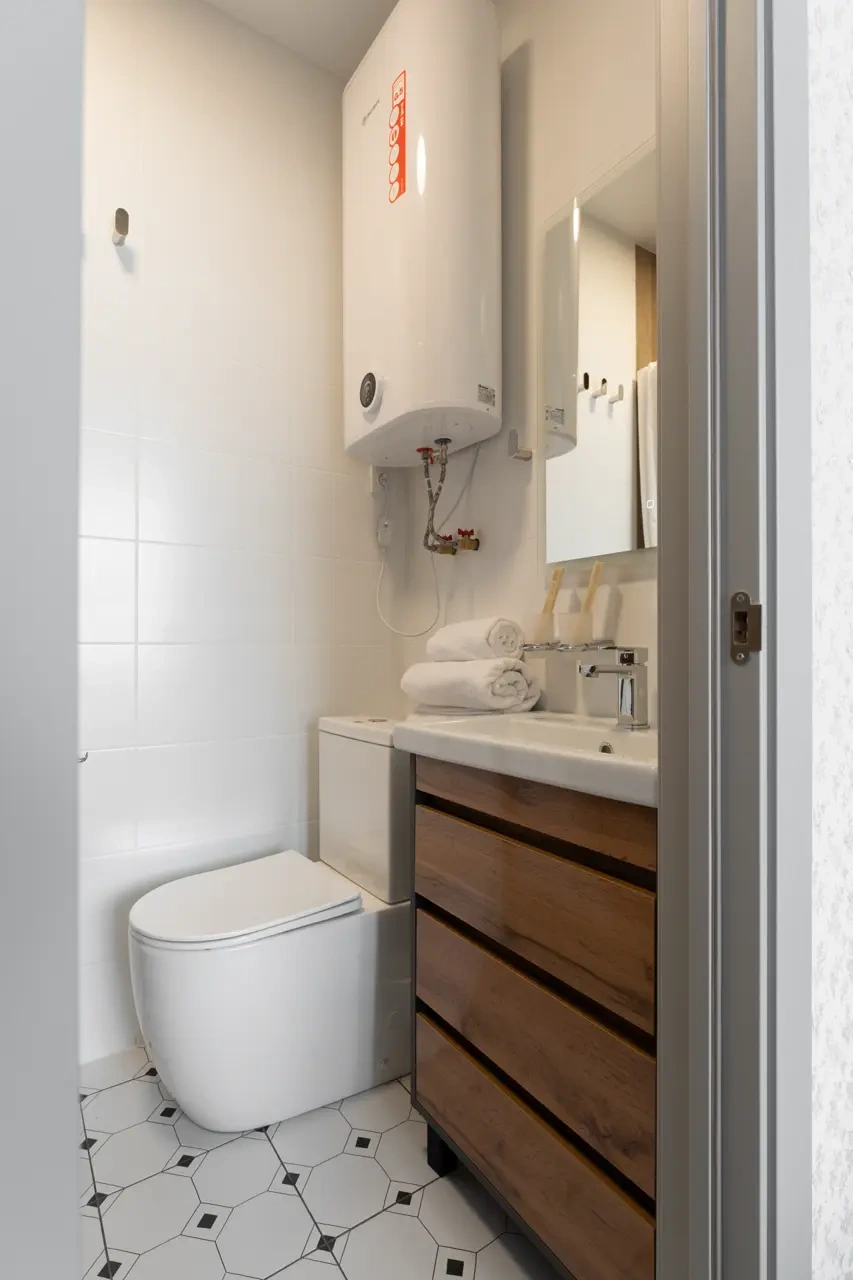 Шикарный номер студия с тремя раздельными или одной огромной кроватью на выбор гостя. Дополнительное место диван-кровать 160/200. Оснащен Яндекс станцией Алиса, TV управляемое Алисой, wi-fi, сплит система, холодильник, гардеробный шкаф, письменный стол, душевая комната, приборы гигиенической косметики. Белье премиального качества.