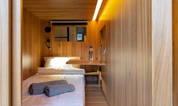 Комфортабельные и просторные капсулы из натурального дерева для двоих. Капсулы оснащены комодом для багажа с контейнером для обуви, откидным столиком, индивидуальной системой вентиляции, светильником для чтения книг, основным светильником, розеткой. Доступ в капсулы и в комод по индивидуальным кодам – 100% безопасность и сохранность ваших вещей. Ванная и туалет в каждом номере, косметические средства от Natura Siberica. Авторский завтрак входит в стоимость капсулы и гарантирует Вам доброе утро :)