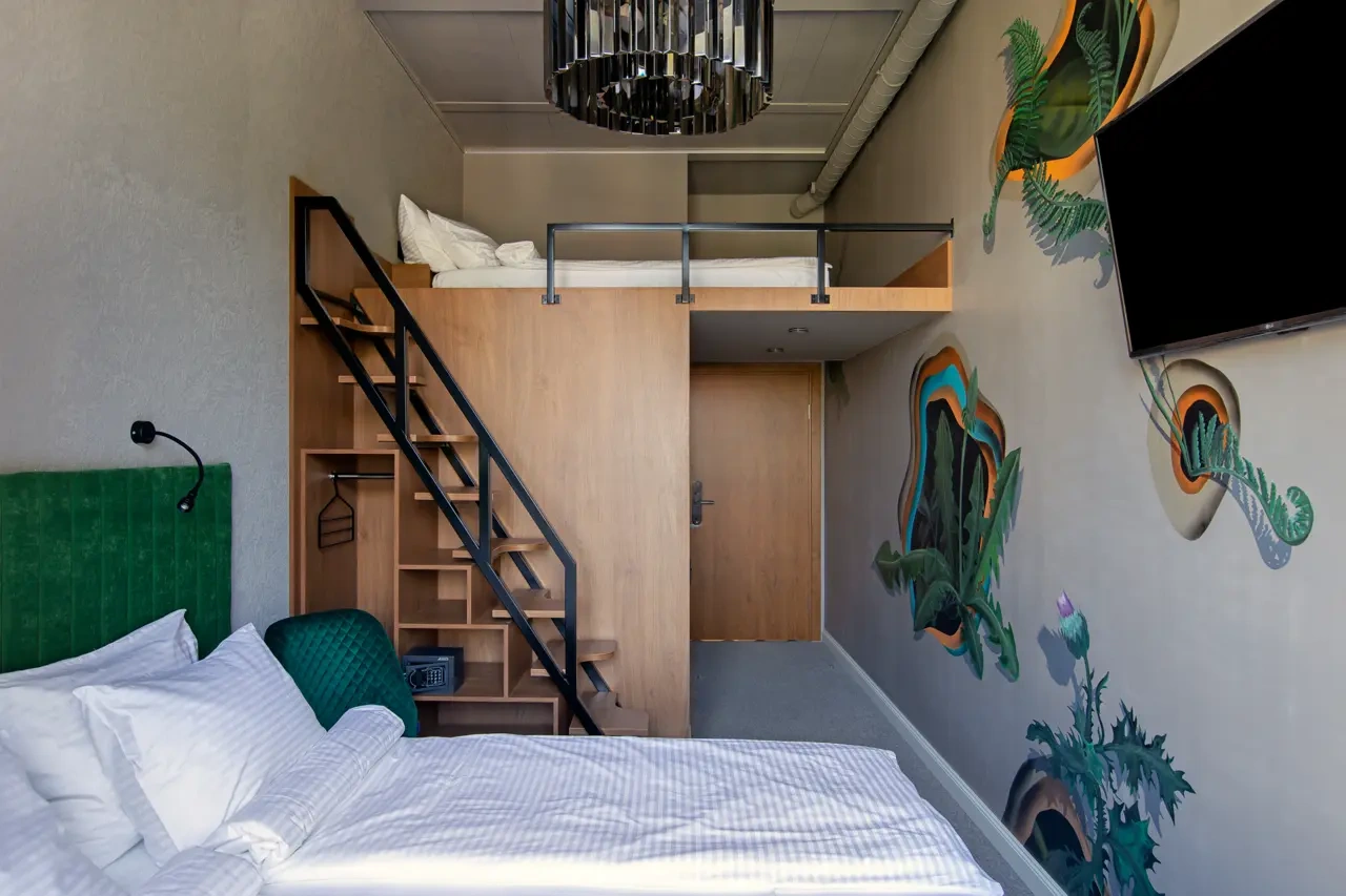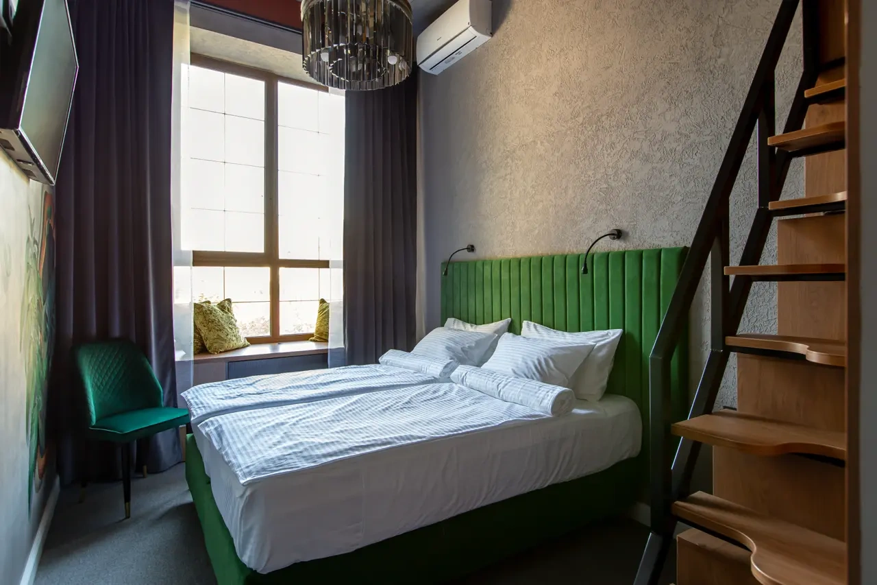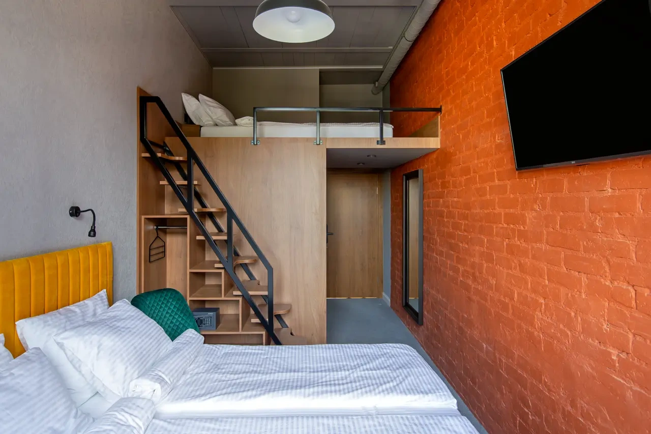 Комфортабельные двухуровневые апартаменты идеально подойдут для размещения семьи или компании друзей до 4 человек. Площадь номера составляет 16 кв. м. К вашим услугам в номере телевизор, сейф, высокоскоростной Wi-Fi, ванная комната с душевой кабиной и санузлом, косметические принадлежности от Natura Siberica, полотенца, халат, фен.