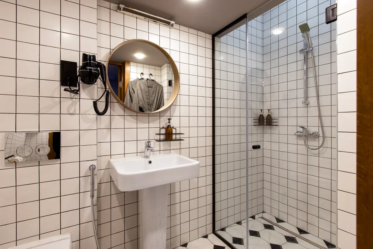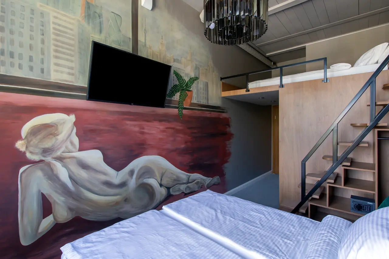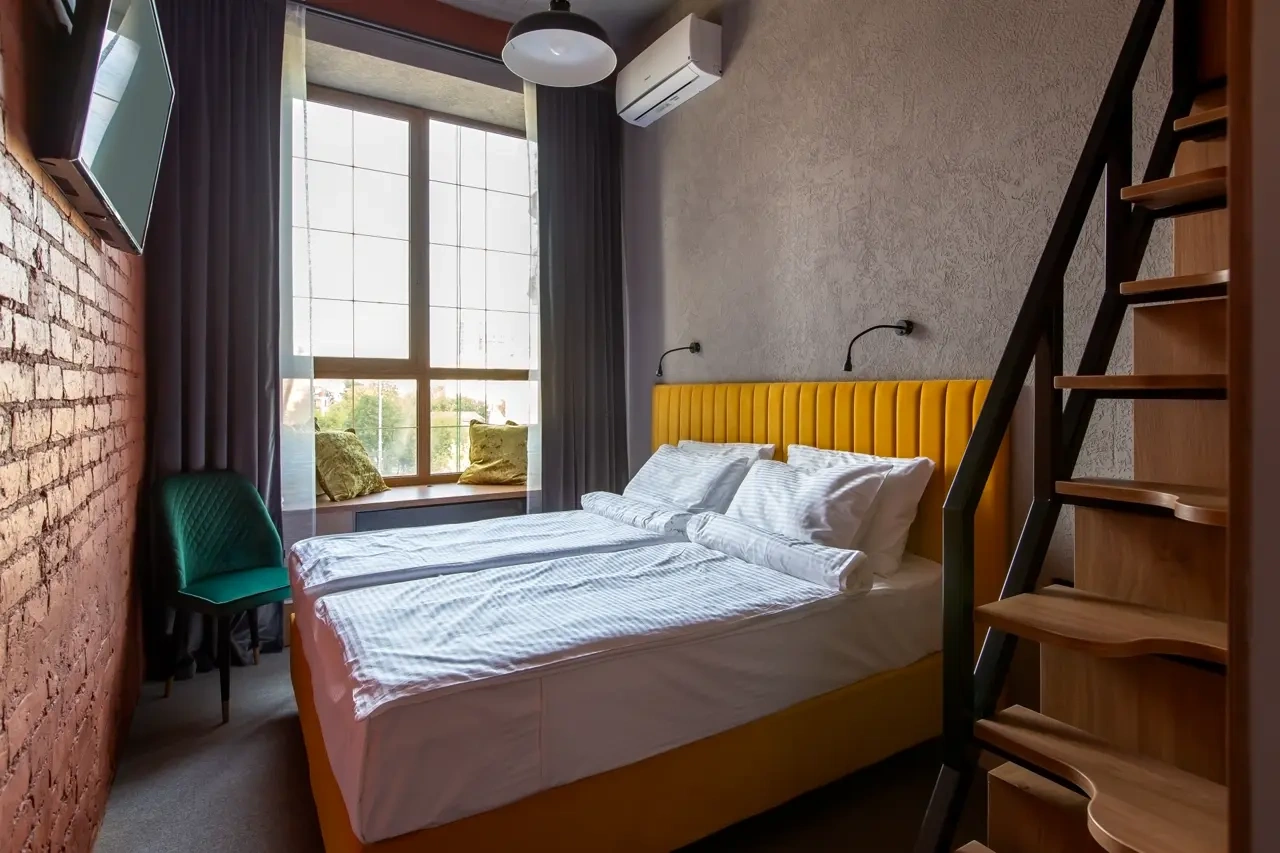 Комфортабельные двухуровневые апартаменты идеально подойдут для размещения семьи или компании друзей до 4 человек. Площадь номера составляет 16 кв. м. К вашим услугам в номере телевизор, сейф, высокоскоростной Wi-Fi, ванная комната с душевой кабиной и санузлом, косметические принадлежности от Natura Siberica, полотенца, халат, фен.
