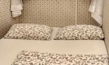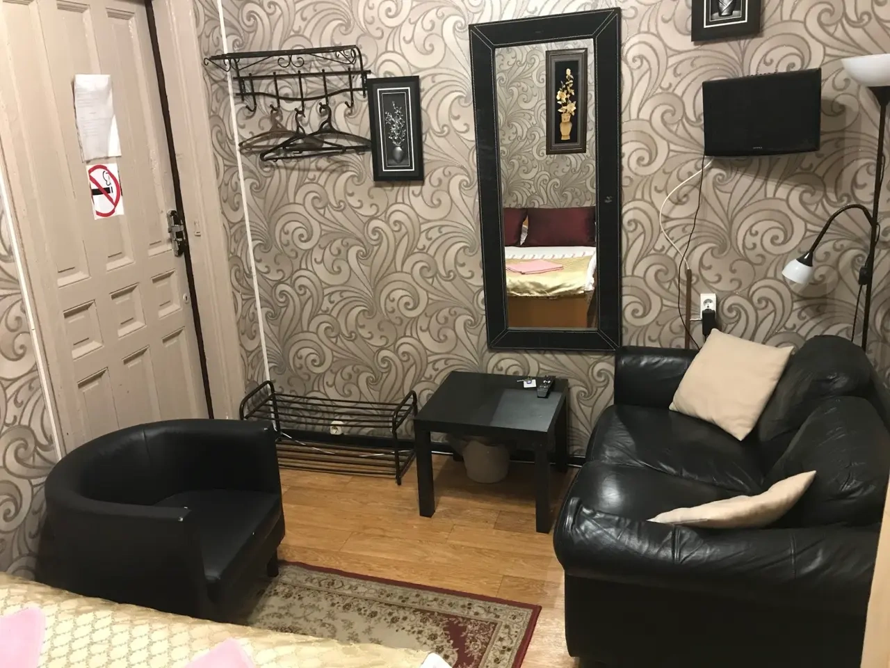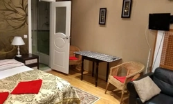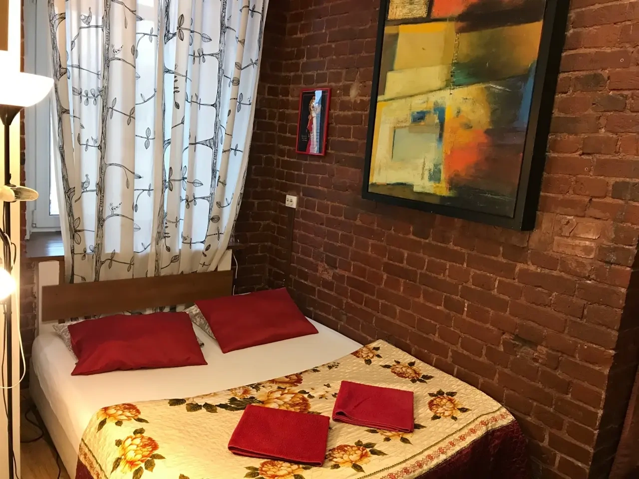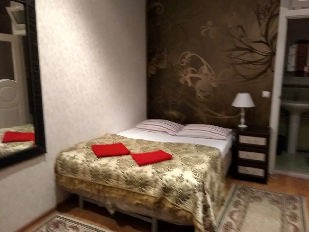 Небольшой уютный,двухместный номер с двуспальной кроватью,с окном во французском стиле. С общей ванной комнатой. Максимальное количество гостей 2.Площадь 5 кв. метров квадратных. Есть телевизор,столик, кресло, большое зеркало. Воздухоочистительная система. Постельое белье, полотенца.