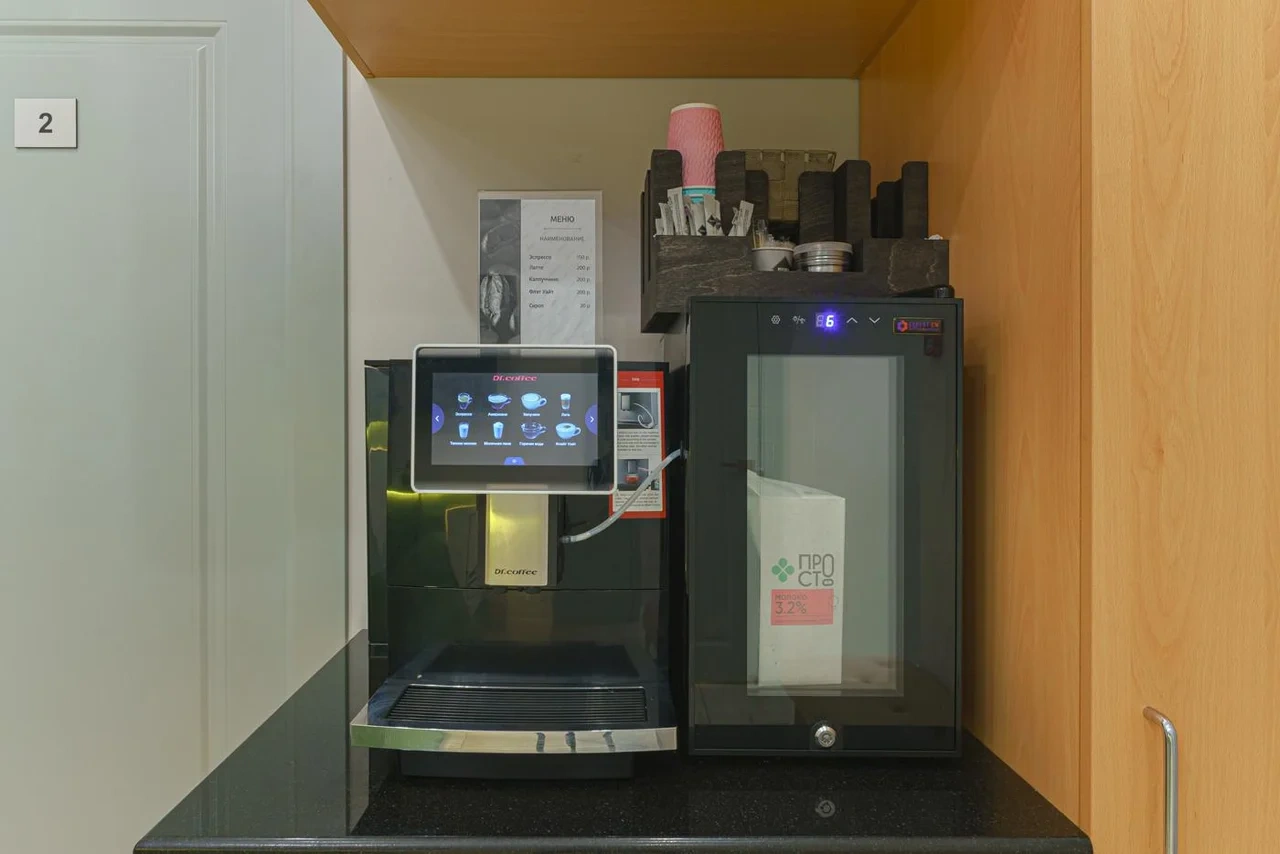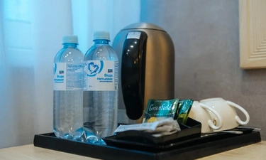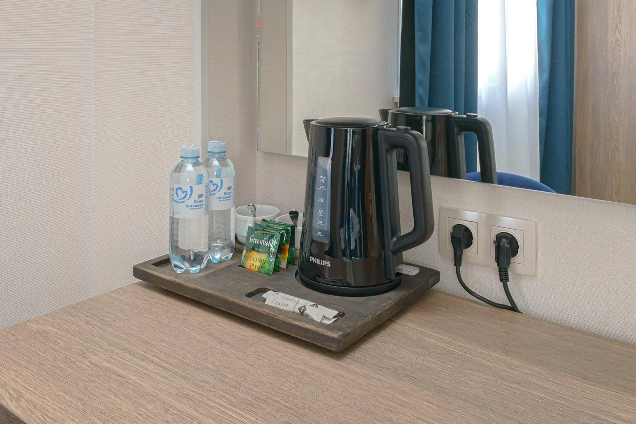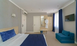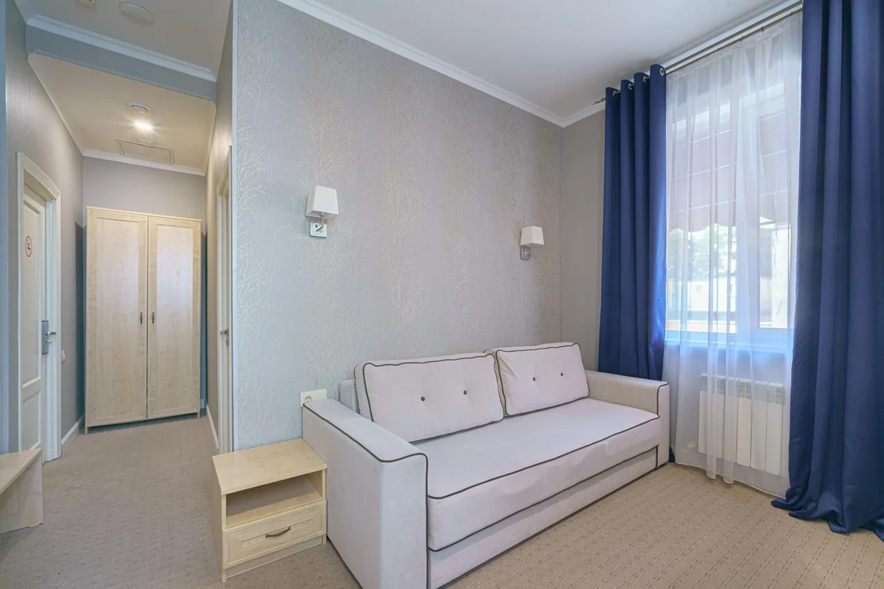Двухкомнатный номер с кондиционером и телевизором с плоским экраном. В распоряжении гостей кофемашина, чайник, халаты, тапочки и бесплатные туалетно-косметические принадлежности.
