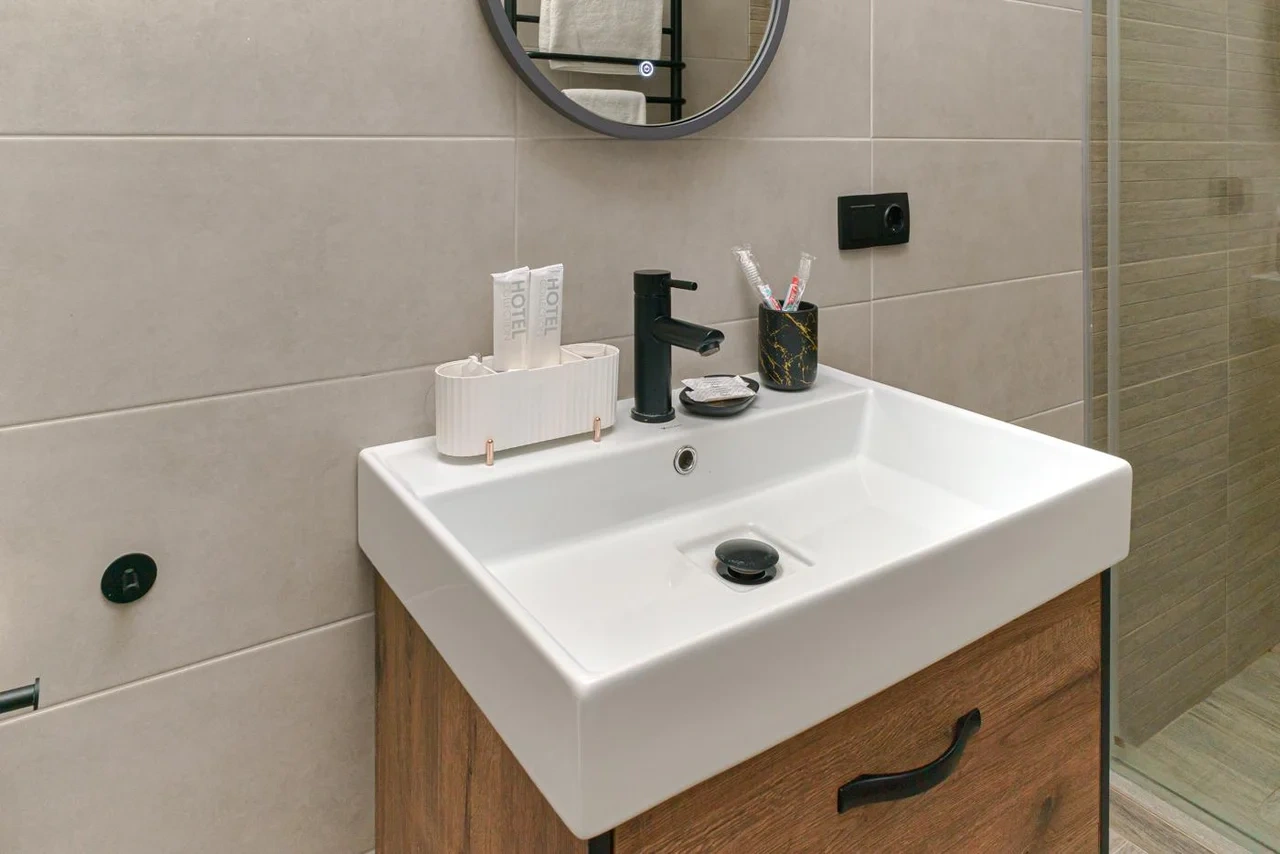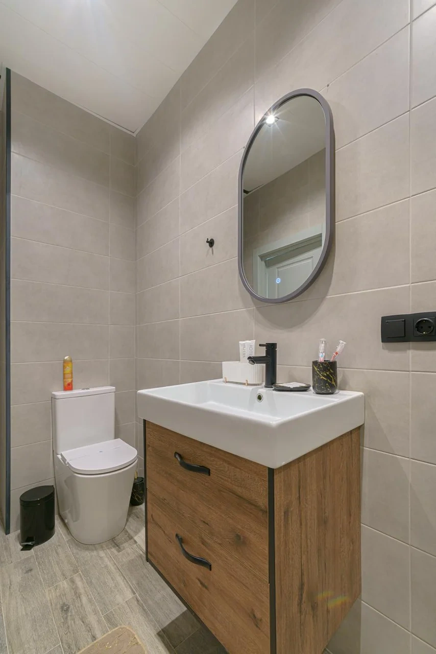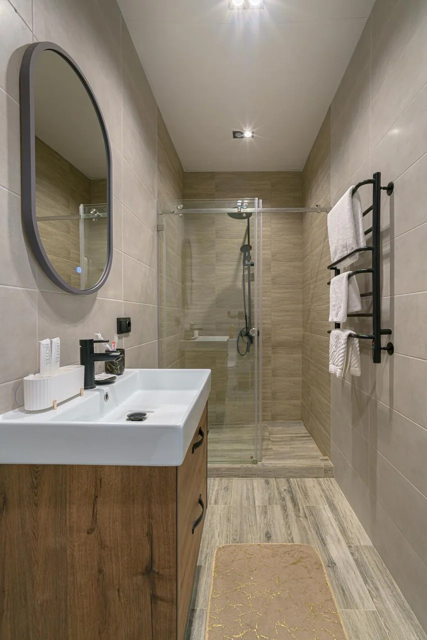 Двухкомнатный номер с кондиционером и телевизором с плоским экраном. В распоряжении гостей кофемашина, чайник, халаты, тапочки и бесплатные туалетно-косметические принадлежности.