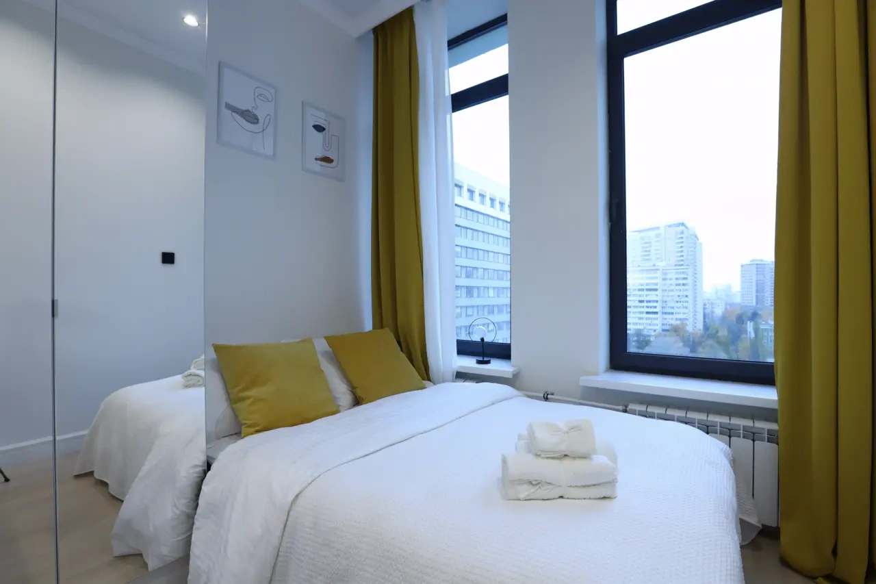 Из окна наших апартаментов открывается панорама похожая на Moscow city, благодаря бизнес-центру Академик.