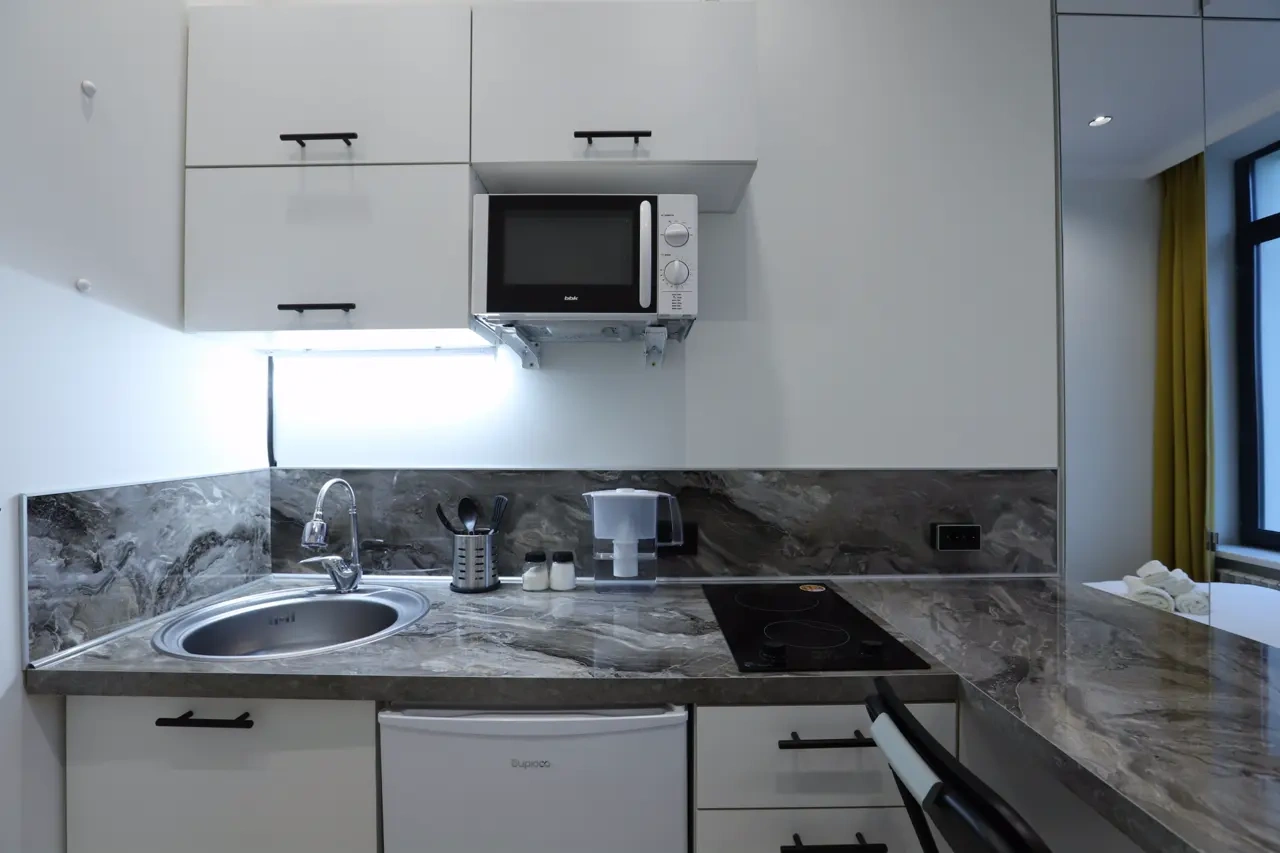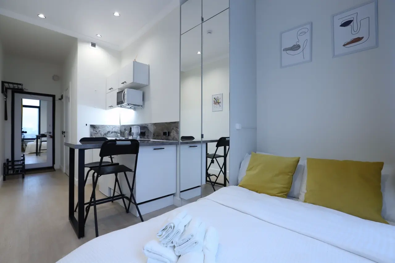 Не смотря на свою компактность в апартаментах есть все необходимое для комфортного проживания.