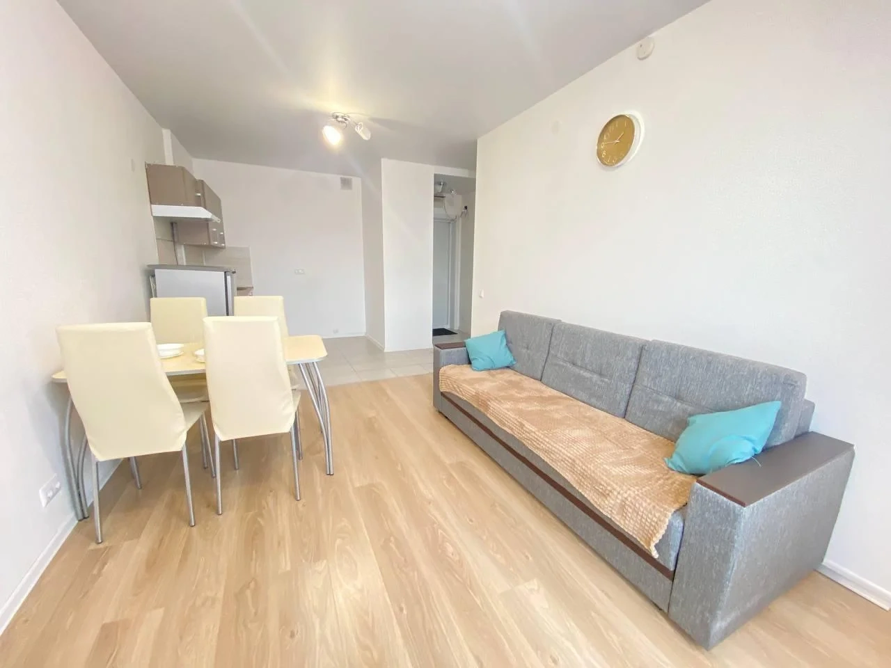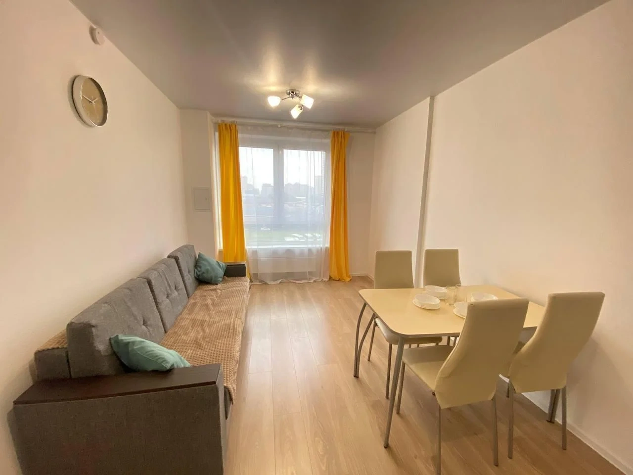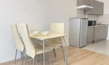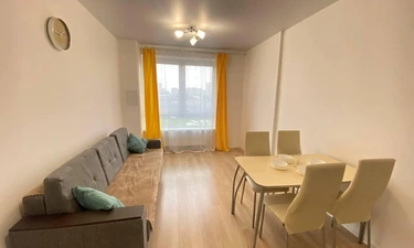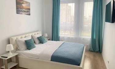 Квартира оборудована всем необходимым: 1 двухспальная кровать, раскладной диван, шкаф, тумбочки, стол со стульями, телевизор, вай фай, утюг.